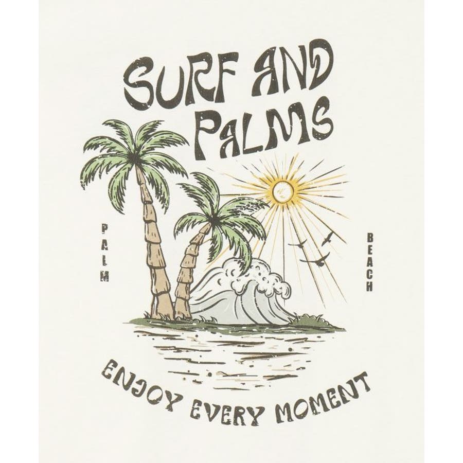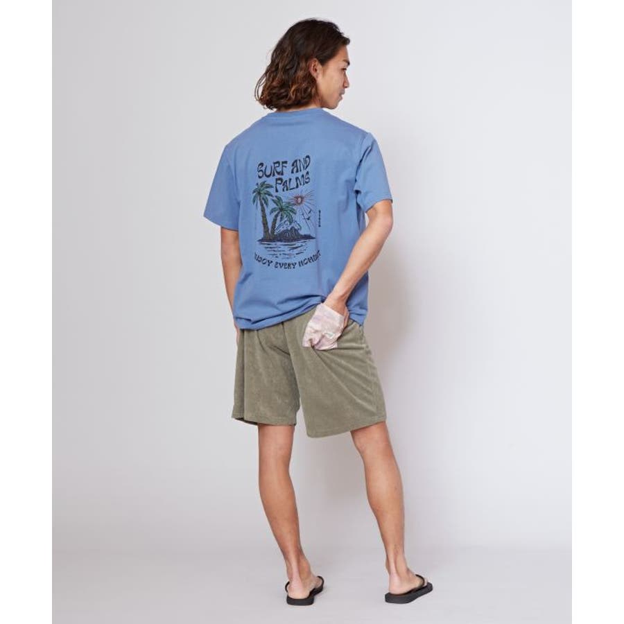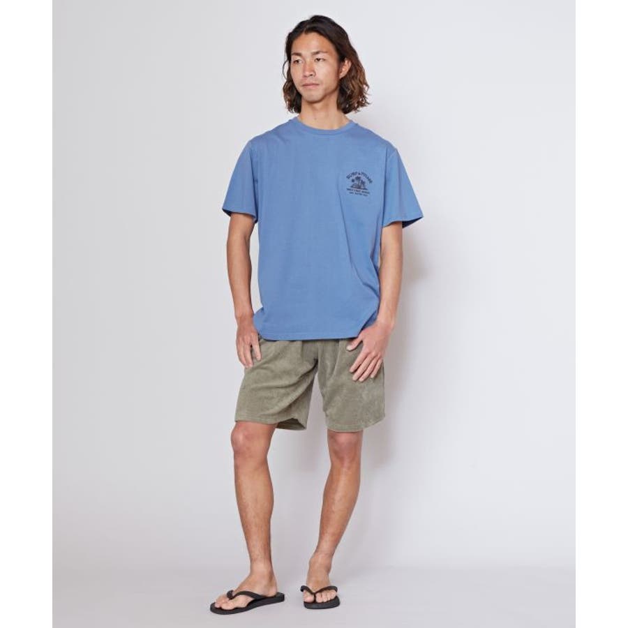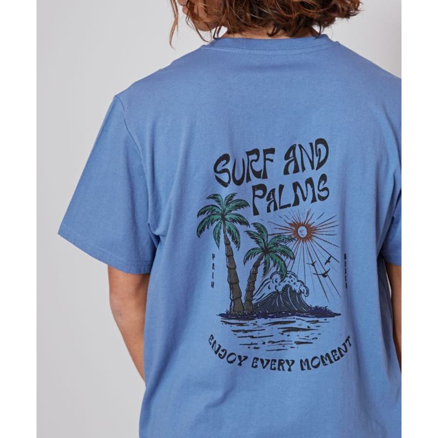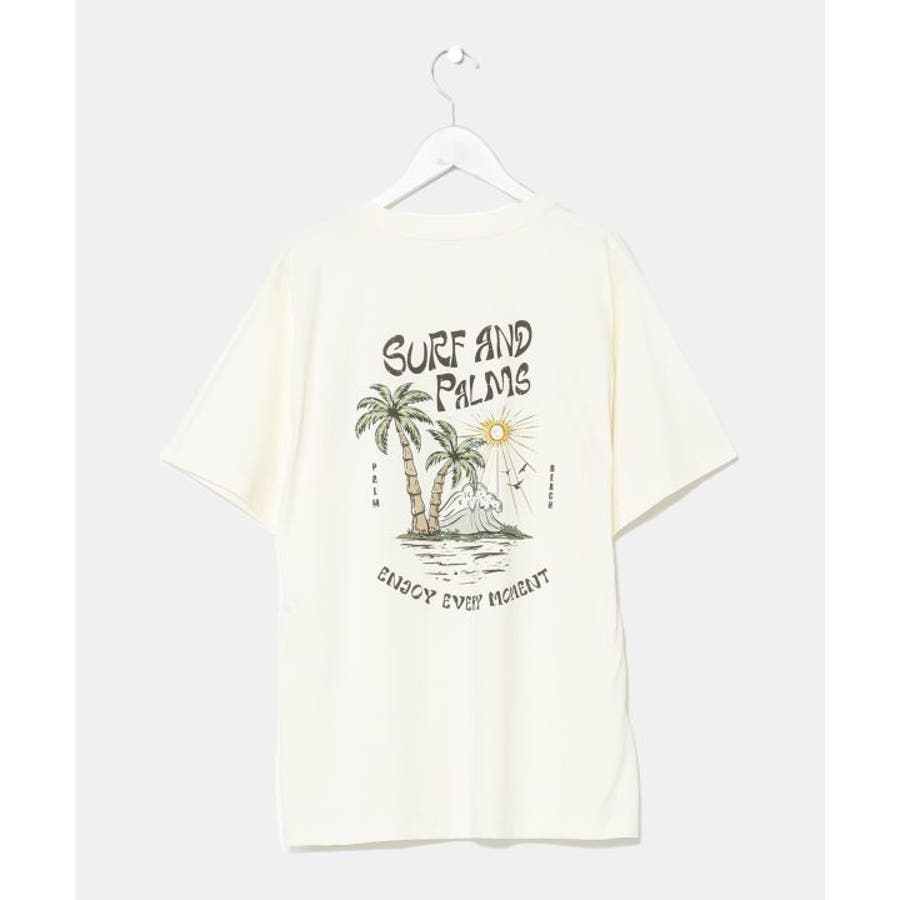 薄手のメンズTシャツ。ゆったりとしたシルエット。サーフシーンをイメージしたバックプリントと、フロントのさりげないフロッキープリントがポイントです。