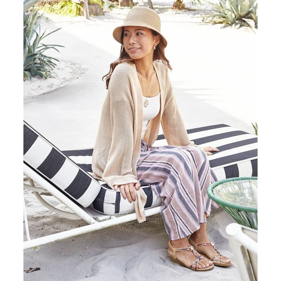 Alohaのチャームがポイントのハット。日除けとしてはもちろん、上品なリゾートスタイルにもおすすめ。