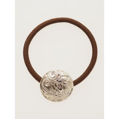 ハワイアンジュエリー風の模様を刻印したコンチョヘアゴム。レイにもよく使われるリーフ「マイレ」をモチーフにしています。使いやすいサイズ感で上品なヘアスタイルに◎