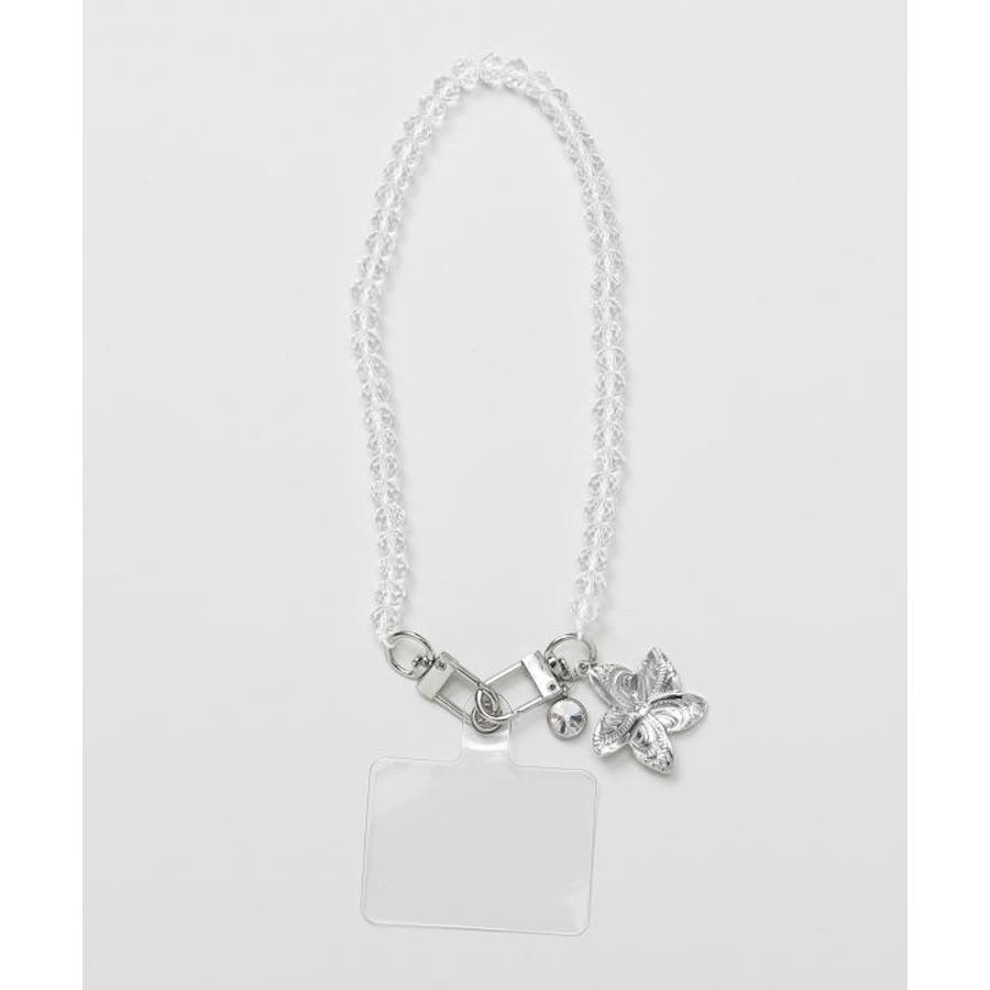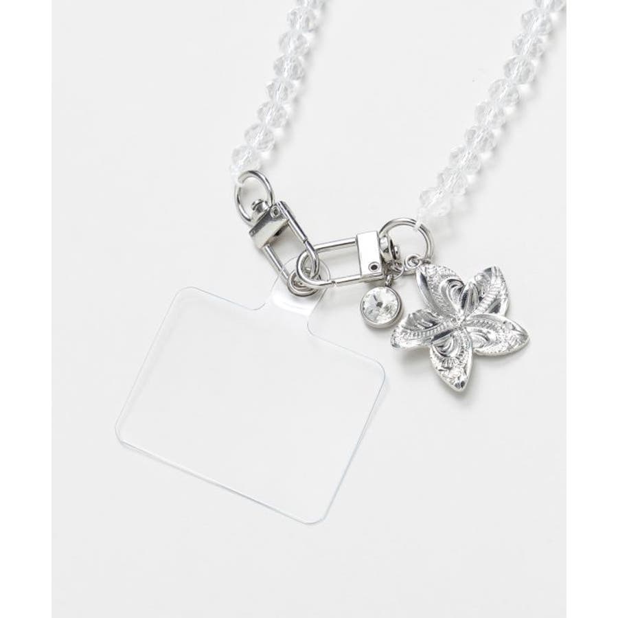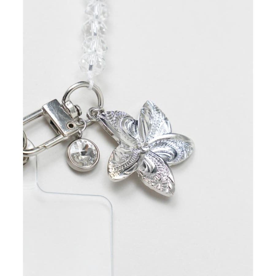 プルメリアのハワイアンジュエリーデザインが魅力のスマホストラップ。ビーズの輝きが南国の海を思わせ、手首にかけて落下を防止できます。上品で華やかなデザインはギフトにもおすすめです。