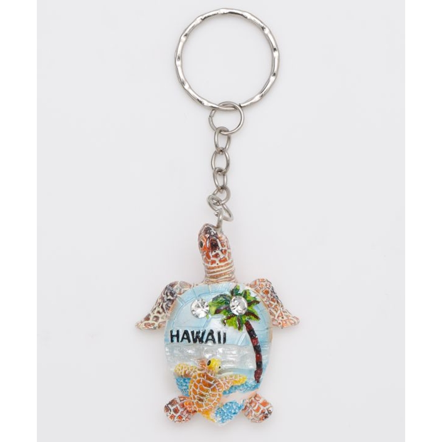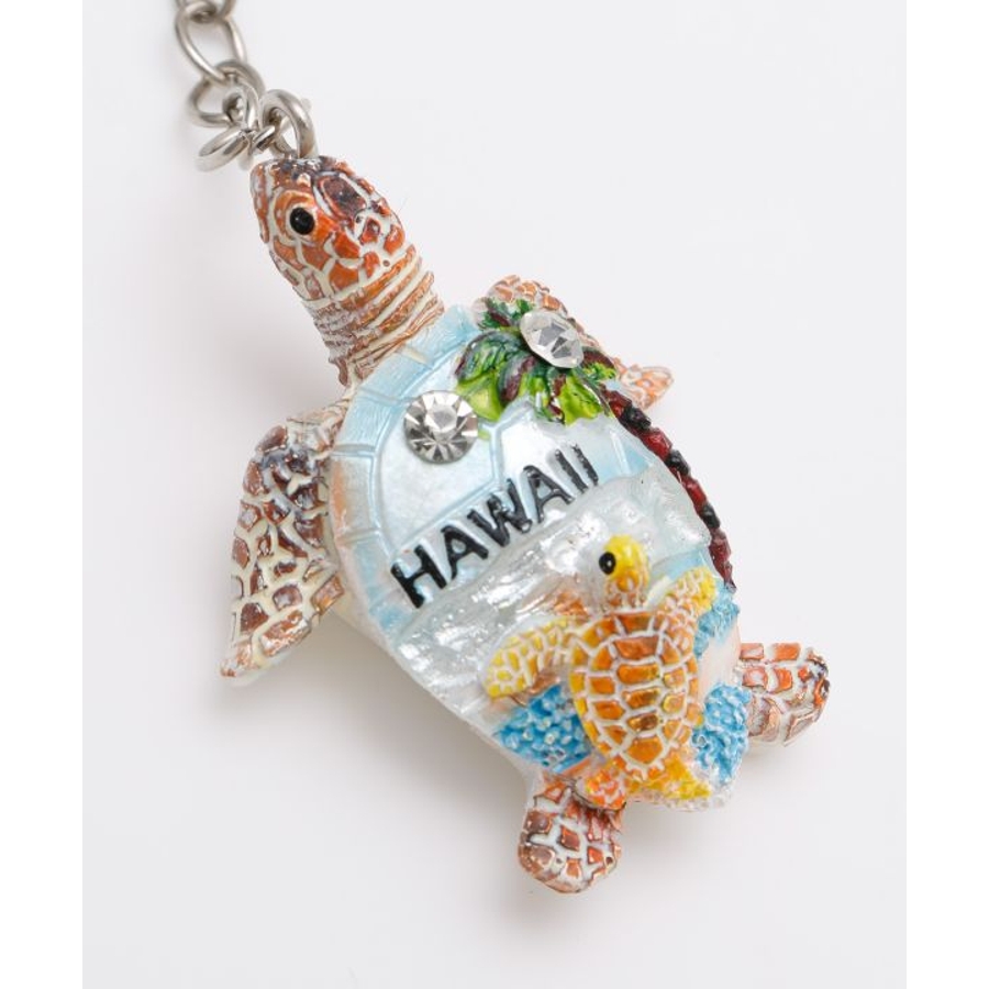 HAWAIIで幸運を運ぶといわれているHonu(海亀)。親亀の甲羅には、HAWAIIの美しい海と小亀が。いつでもHAWAIIを感じることができるキーホルダーです。HAWAII直輸入。