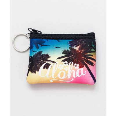 椰子の木やトロピカルな花、パイナップルetc…★南国の楽園・ハワイアンパラダイスの雰囲気満点な平ポーチ。ちょっとした小物類をしまうのに便利なサイズ感。内側にキーチェーン付きですので鍵の収納にも便利です。ウエットスーツと同じクロロプレンゴム素材を使用していますので、レジャーにも最適です。
