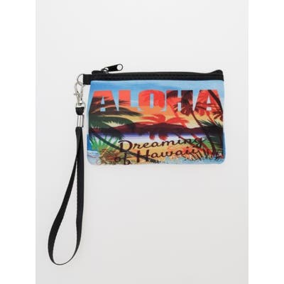 椰子の木やトロピカルな花、パイナップルetc…★南国の楽園・ハワイアンパラダイスの雰囲気満点な平ポーチ。ちょっとした小物類をしまうのに便利なサイズ感。ストラップ付きなので持ち運びも便利です。ウエットスーツと同じクロロプレンゴム素材を使用していますので、レジャーにも最適です。