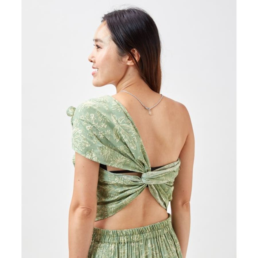 ハワイアンキルトとタパをモチーフにした落ち着きのある柄のサッシュスカート。30通りもの豊富な着方ができるサッシュスカートで自分に似合う「新しい美」を探してみては。お出かけだけでなくドレスとしてリゾート挙式にも着ていただける万能アイテムです。