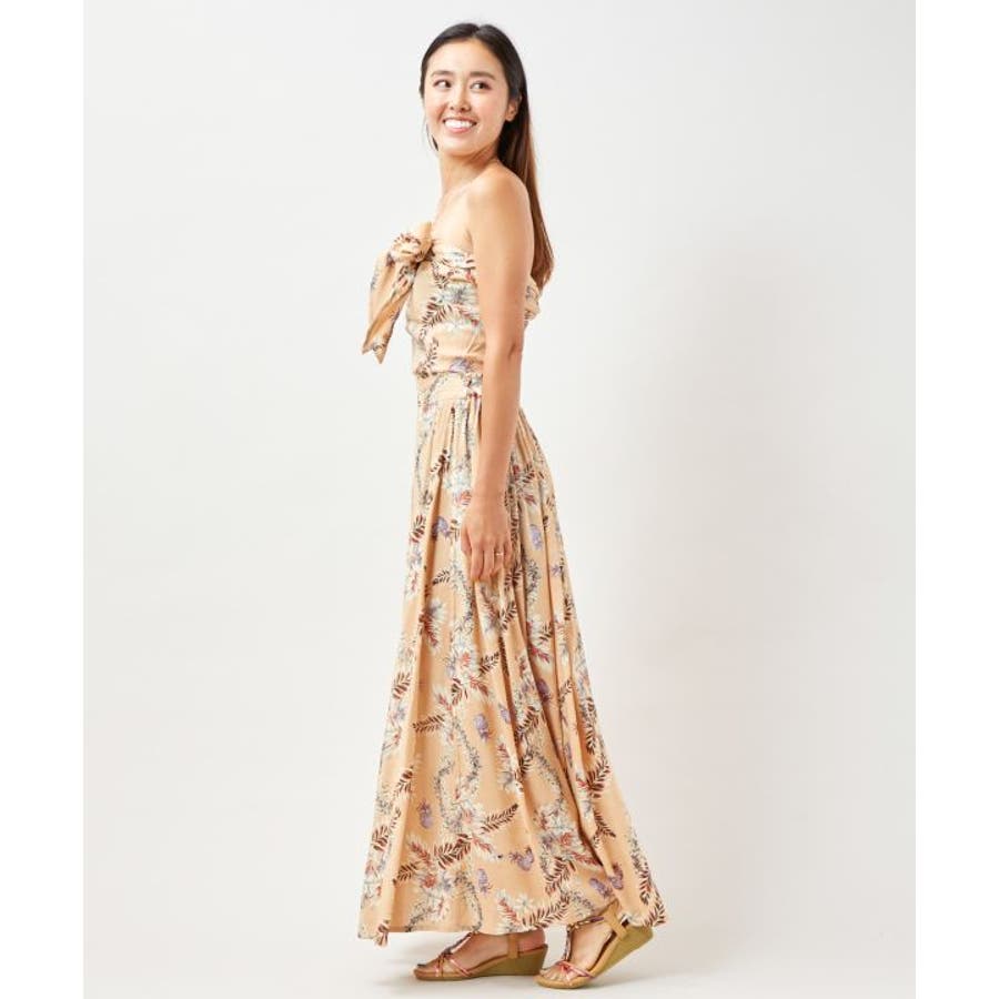 ボタニカルとパイナップル柄を組み合わせたサッシュスカート。30通りもの豊富な着方ができるサッシュスカートで自分に似合う「新しい美」を探してみては。お出かけだけでなくドレスとしてリゾート挙式にも着ていただける万能アイテムです。
