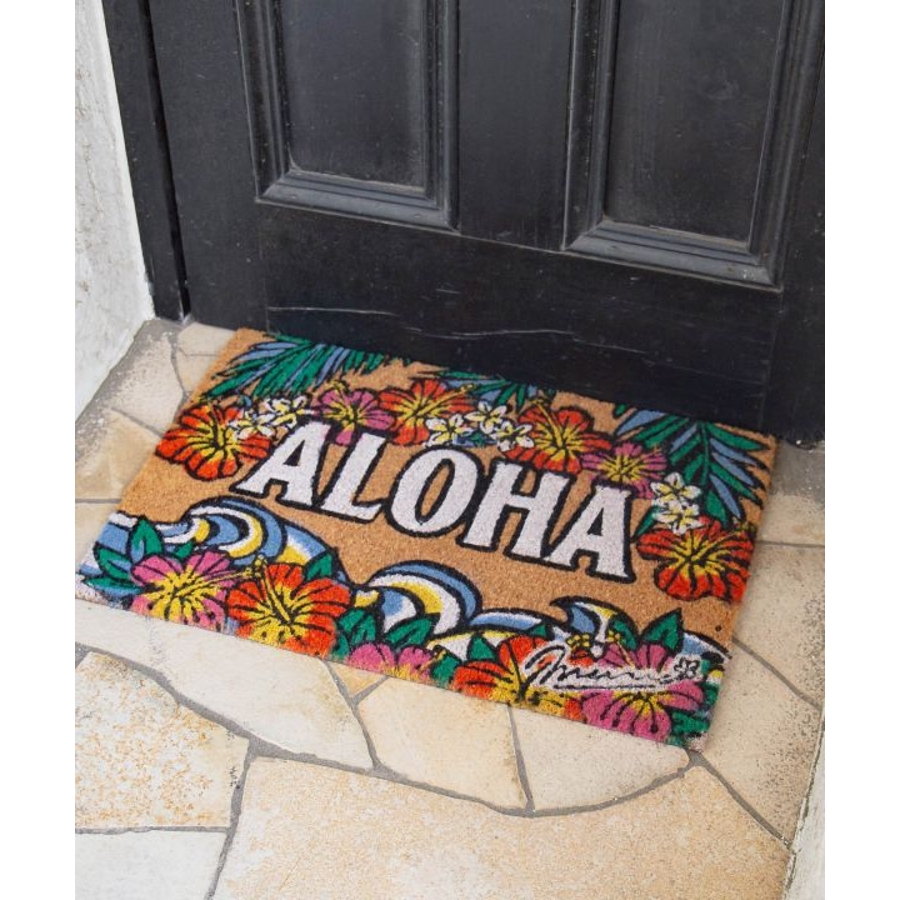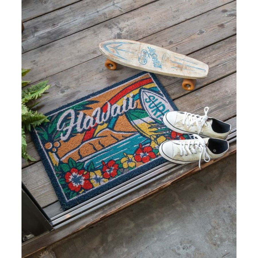 ココヤシの天然繊維でできた屋外用マット・コイヤーマット。玄関からハッピーな気分にさせてくれるハワイアンデザイン。固いココヤシの繊維が靴の裏の泥や汚れをしっかり落としてくれます。裏面は滑り止めラバー加工で機能性も抜群!玄関はもちろん、テラスやベランダに敷くのもおすすめです◎