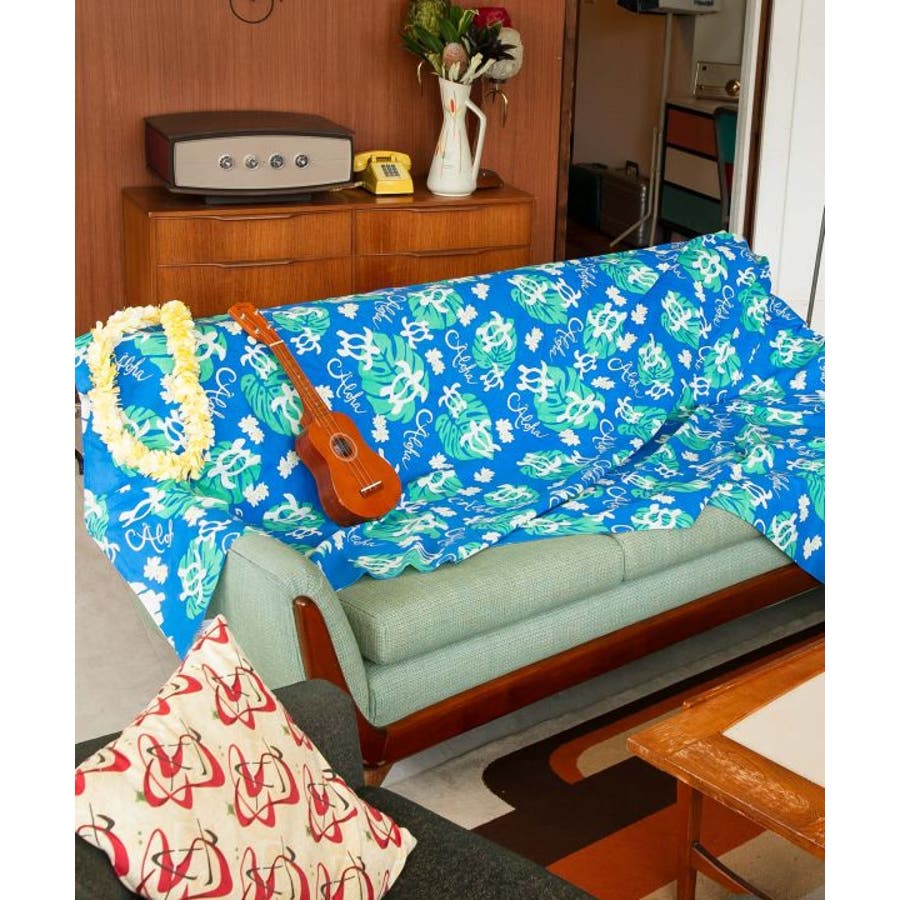 パームツリーやホヌなど、まるでハワイのお土産のようなデザインのマルチクロス。テーブルクロスやソファーのカバーなど、様々な用途で使えます。お部屋を明るく爽やかなハワイアン空間にしてくれます。