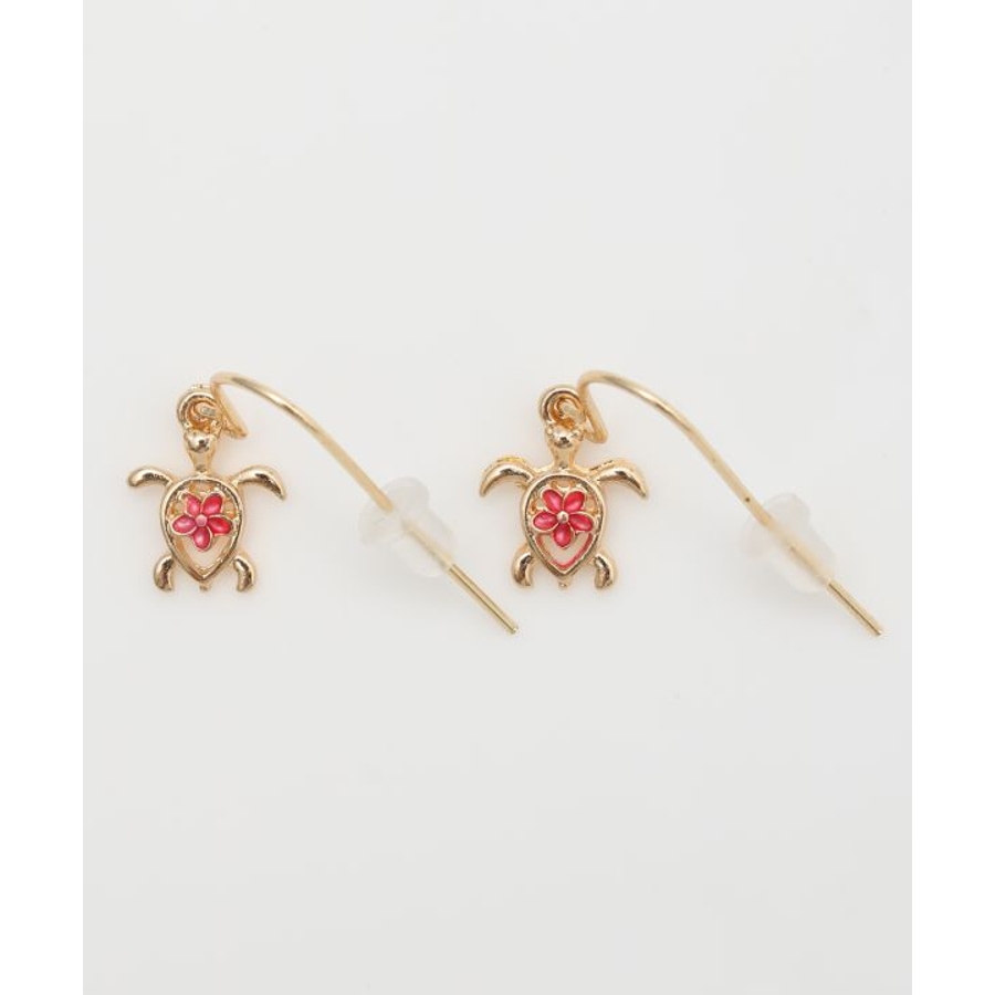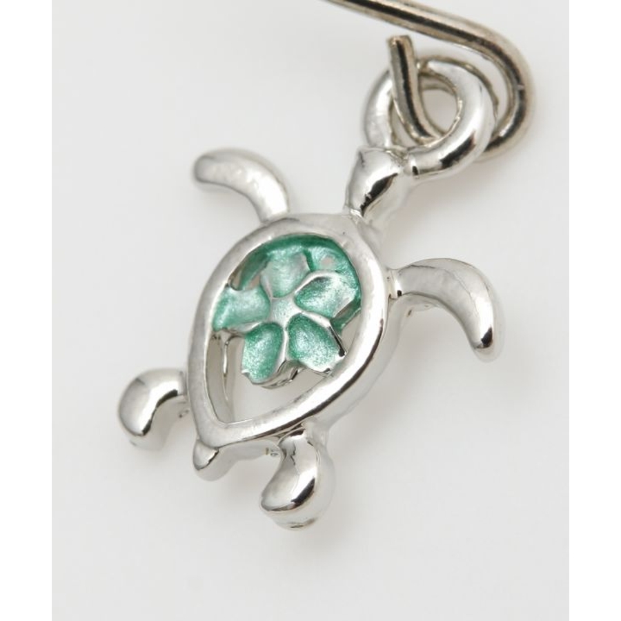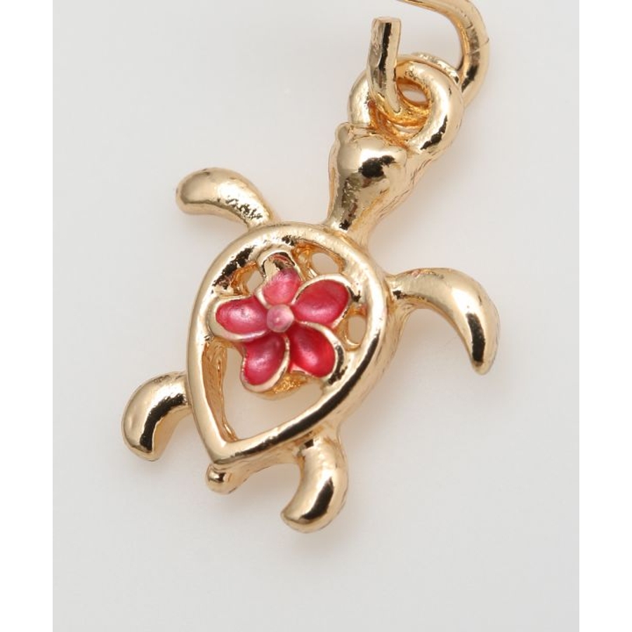 ホヌモチーフにプルメリアのフラワーをあしらった、ミニサイズながらも凝ったデザインがポイントです。揺れるフックタイプ。