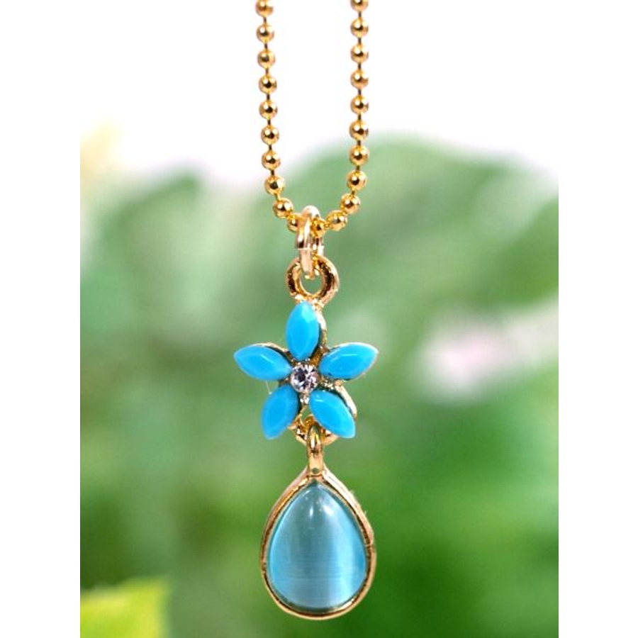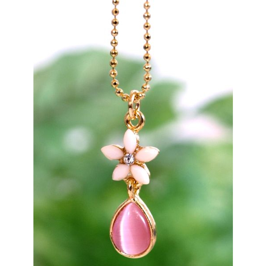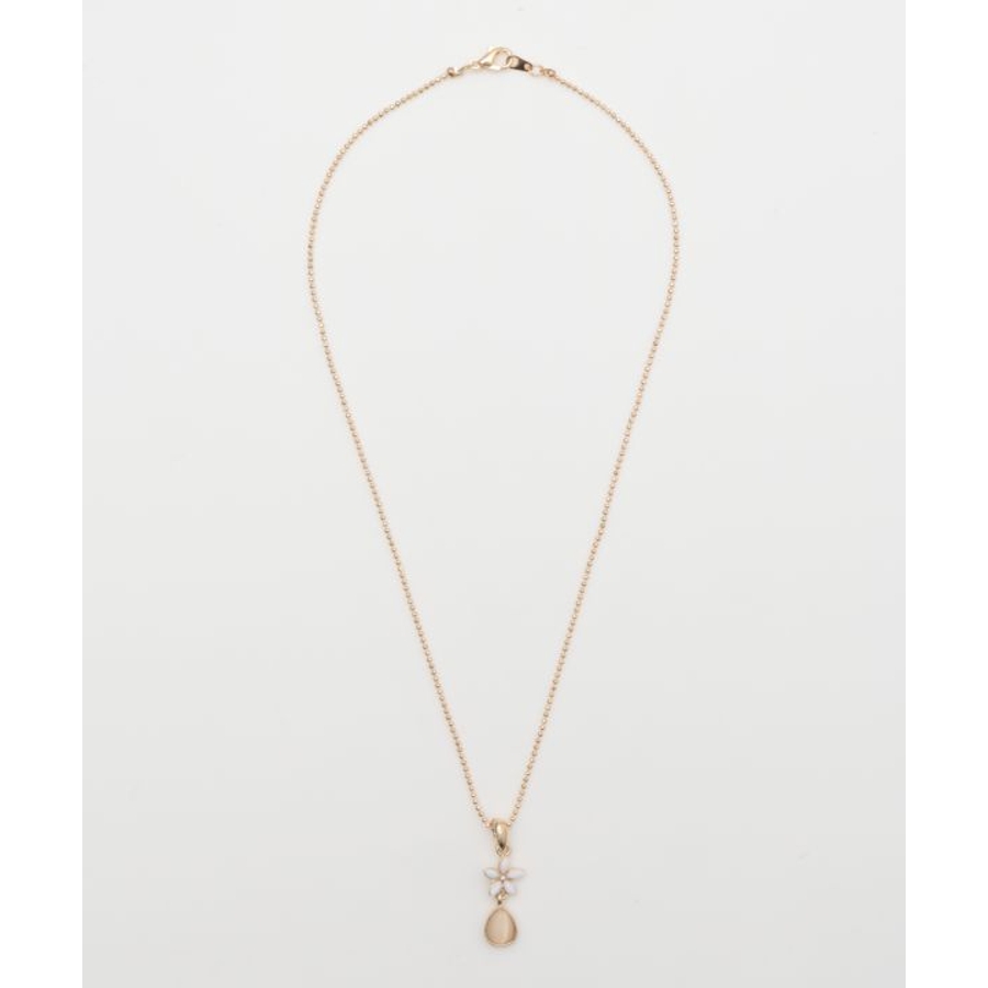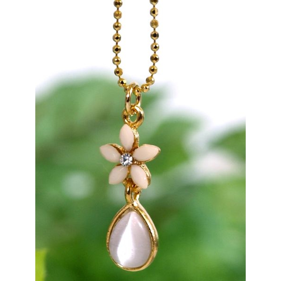 クリアカラーの小さなプルメリアにしずく型のモチーフの華奢なネックレスです。