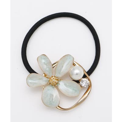 上品なデザインのプルメリアとパールがついたヘアゴム。落ち着いた色味のパステルカラーは、年代問わず長くおご愛用いただけます。