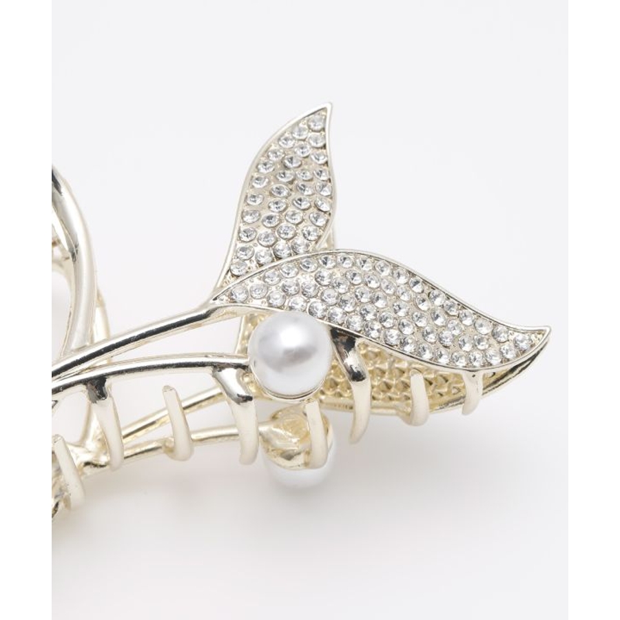 大きなホエールテールのモチーフが目を惹くヘアクリップ。ホエールテールは幸運を祈るラッキーアイテムとしても人気なモチーフです。煌びやかなラインストーン付きで贈り物にもオススメ。