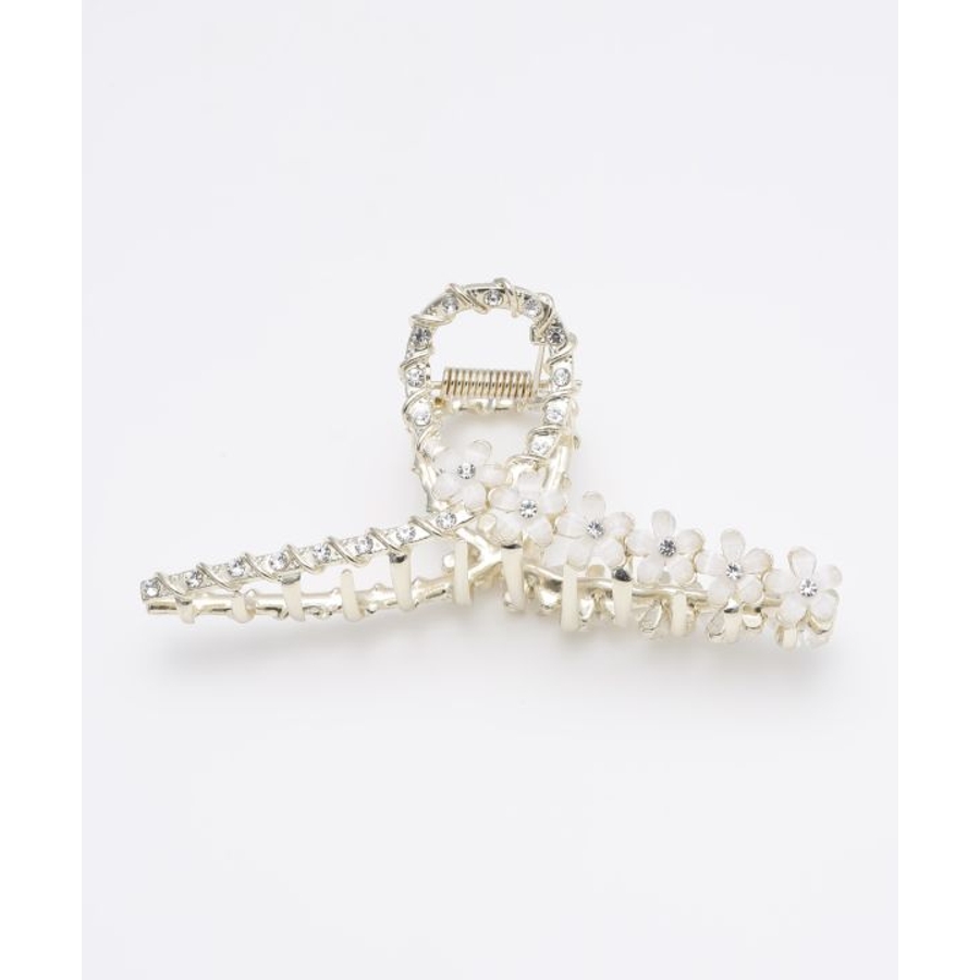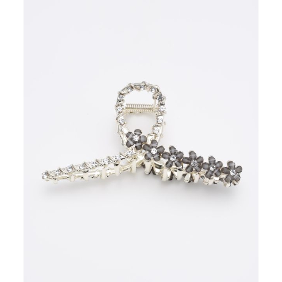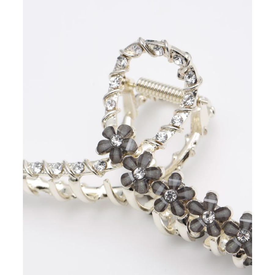 全体にラインストーンが施された、ゴージャスなヘアクリップ。花びらモチーフが可愛らしいデザインで、ヘアアレンジのワンポイントに最適です。