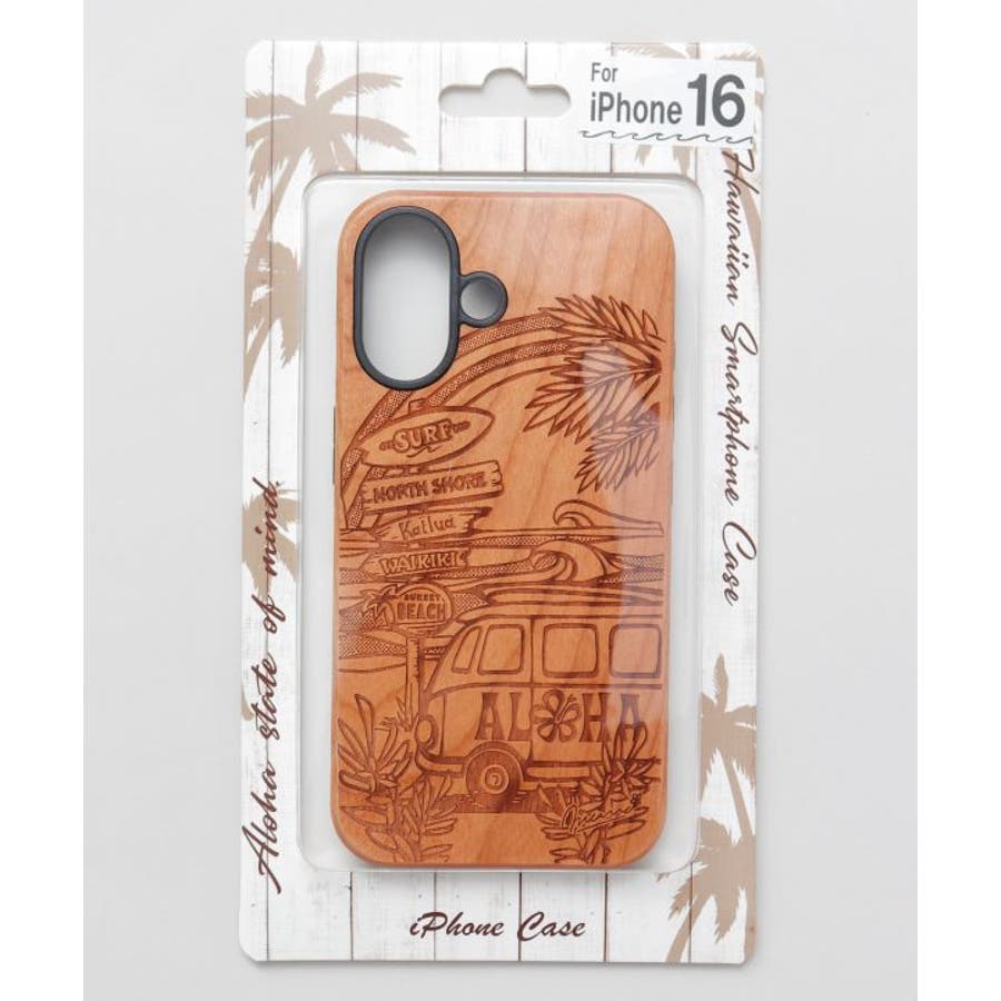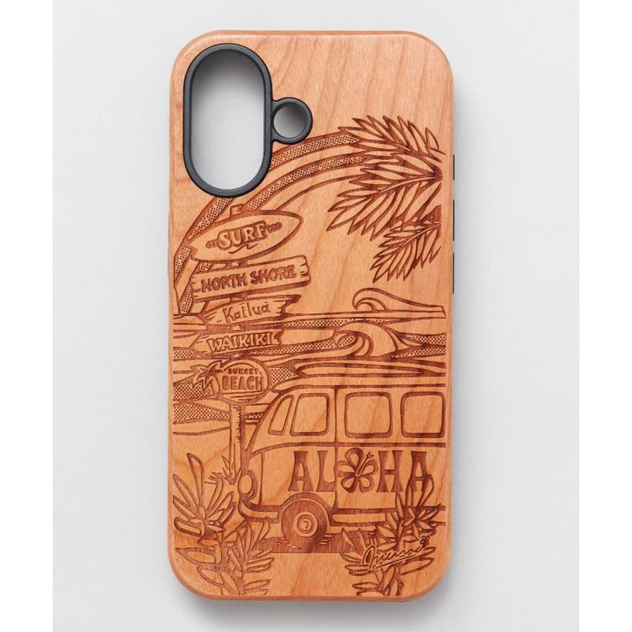 ウッドにレーザー加工したスマホケース。どのデザインもウッドに描かれているので、落ち着いた雰囲のなかにハワイの力強さを感じられます。iPhone16対応。
