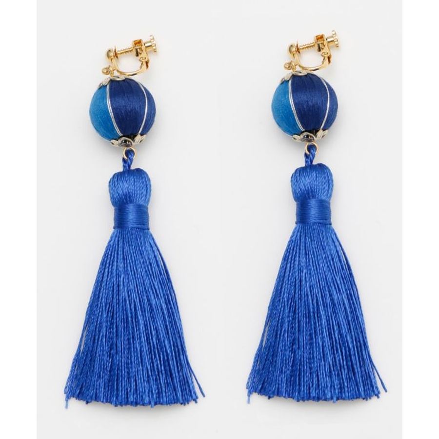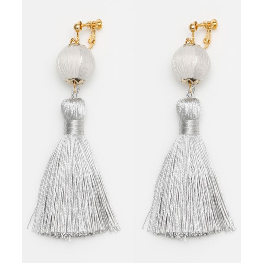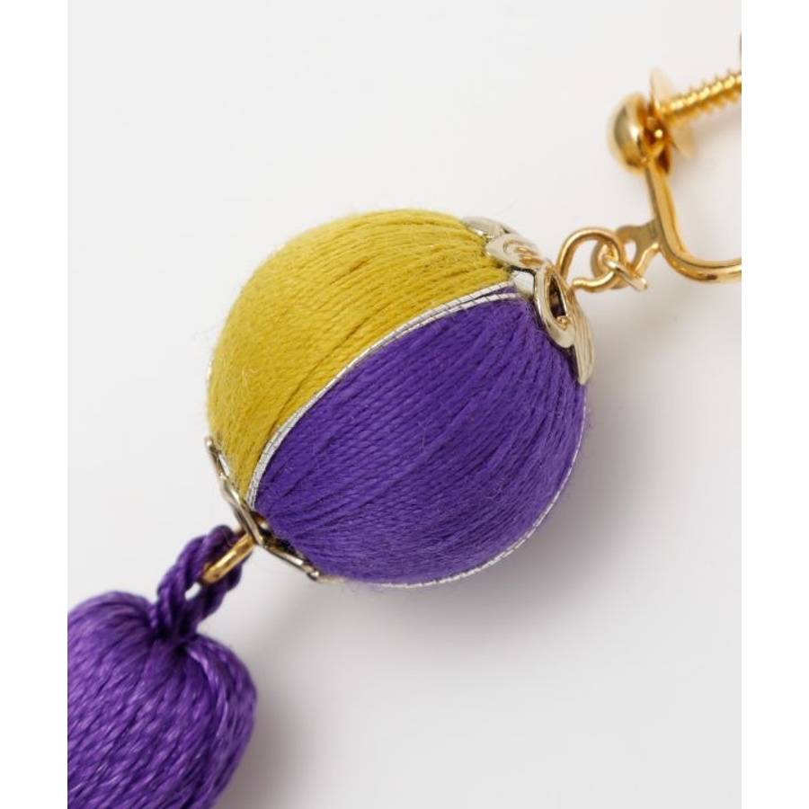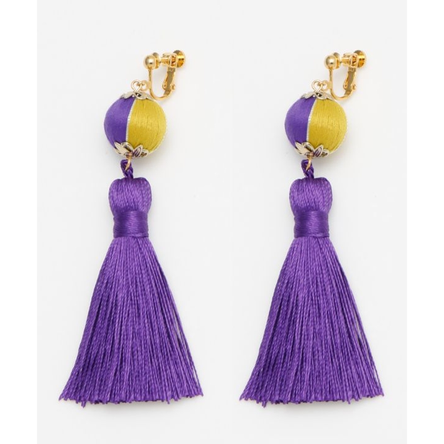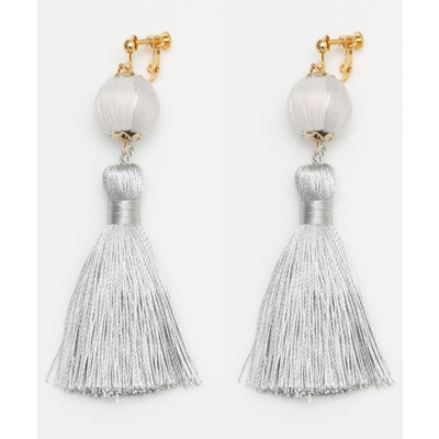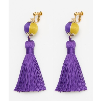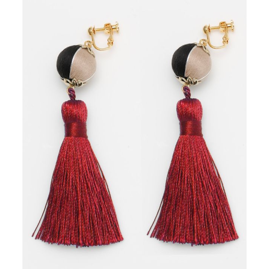 昔ながらの玩具「手鞠」とモダンな印象のタッセルを、シンプルな和の色彩で表現したイヤリング。艶感のある糸を使用しているので、シンプルな装いにも華を添えてくれます。