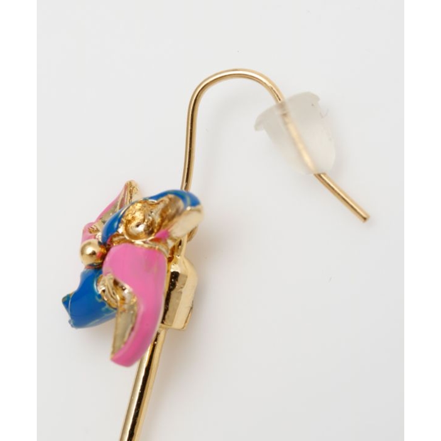 風車をモチーフにした遊び心あふれるピアス。小さな風車がくるくると回る姿が愛らしく、見ているだけで心が弾みます。カラフルな色使いが耳もとを華やかに彩り、和装にも洋装にも自然に馴染む軽やかで上品なデザインです。
