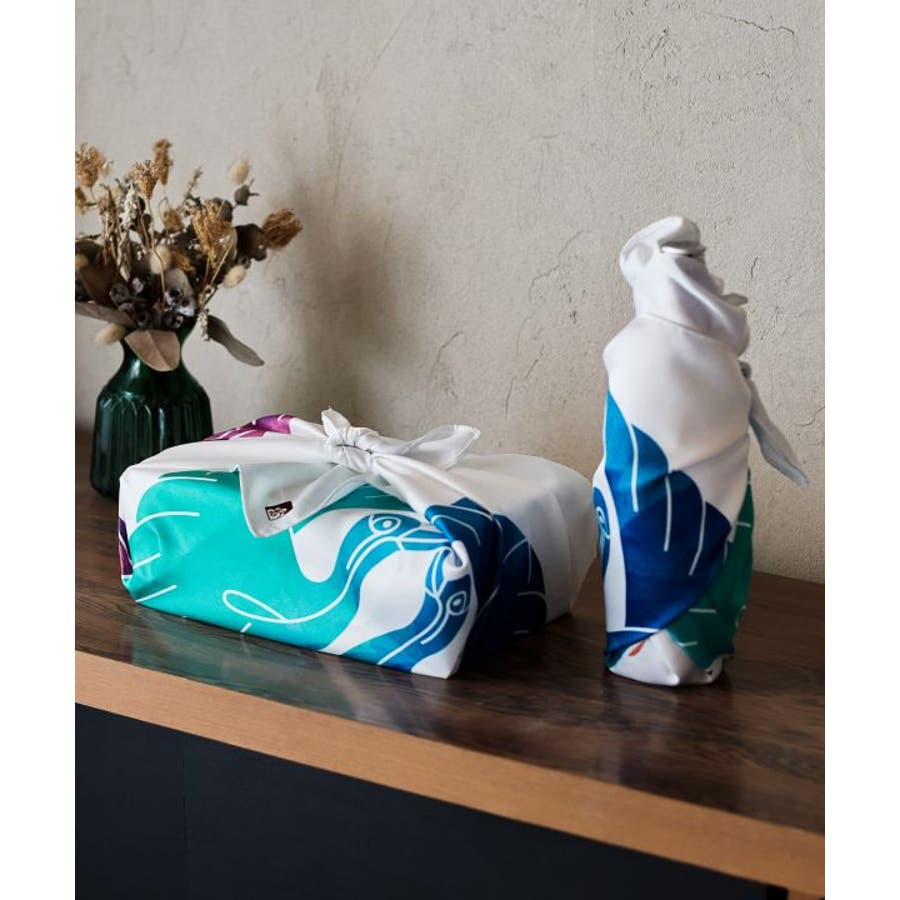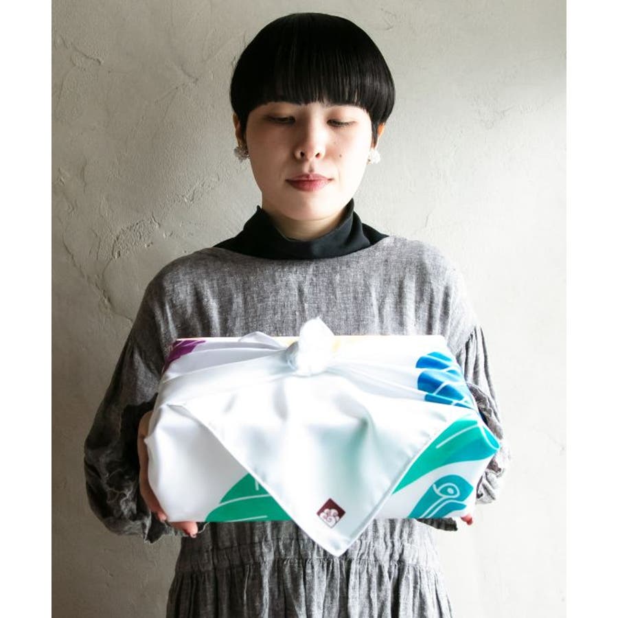 撥水加工を施した生地を使用した風呂敷。お弁当やちょっとした贈り物を包むのにおすすめです。使用を続けていくうえで撥水効果が薄くなった場合は、表面からアイロンをかけていただくと効果が戻ります。