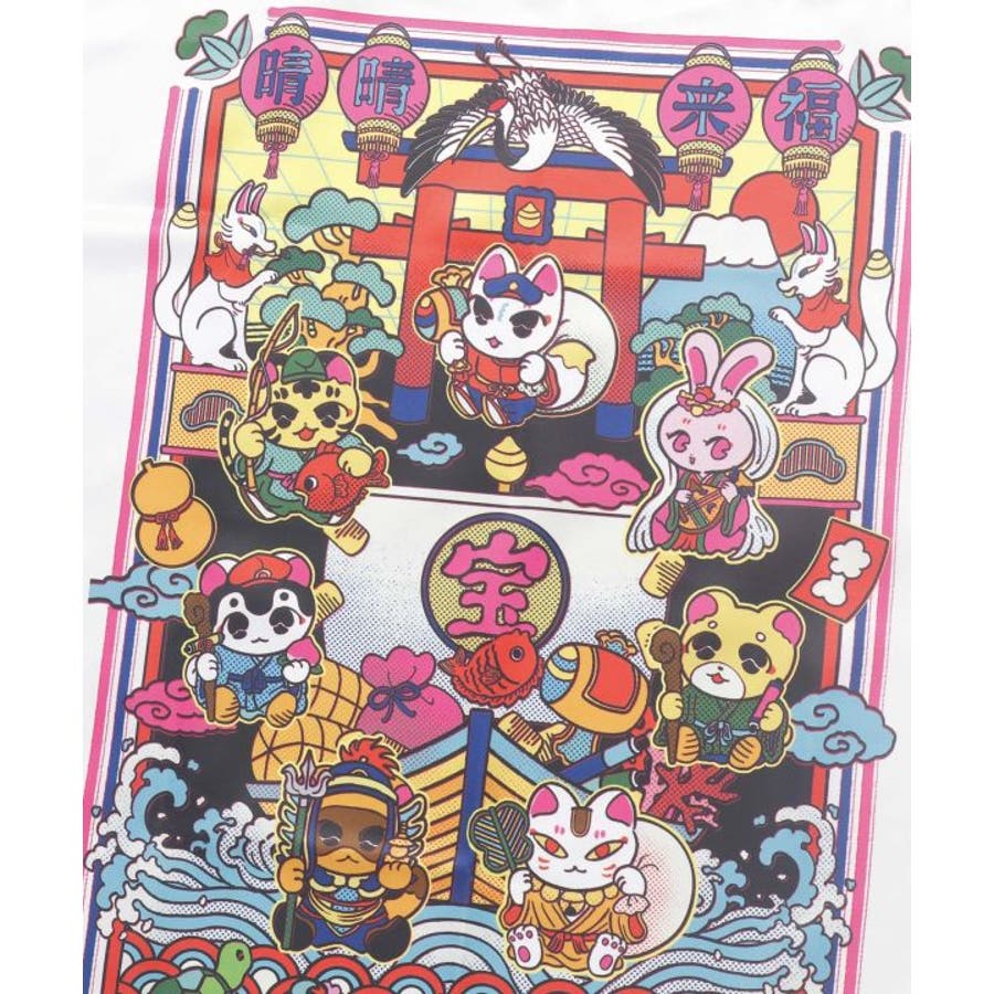 【倭物やカヤ×中村杏子】可愛らしい表情の動物たちをポップな色使いで表現。撥水加工がされているので、ちょっとした雨の日でも安心して使えます。お部屋のインテリアとしてもおすすめの一枚。