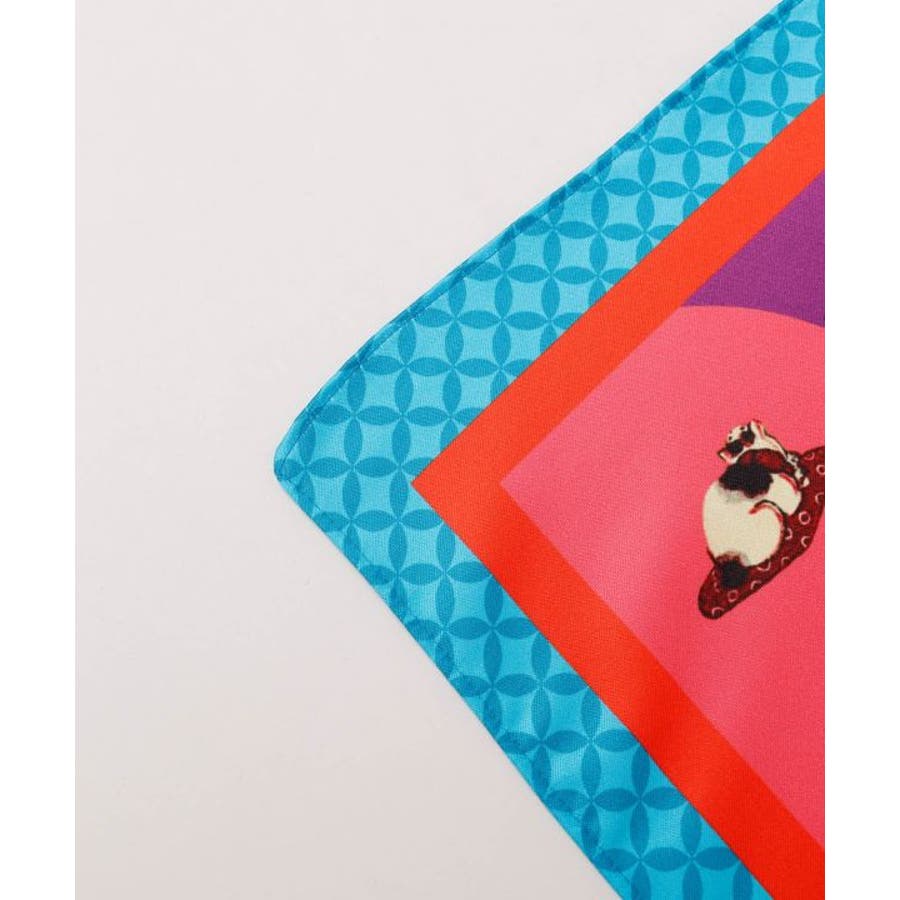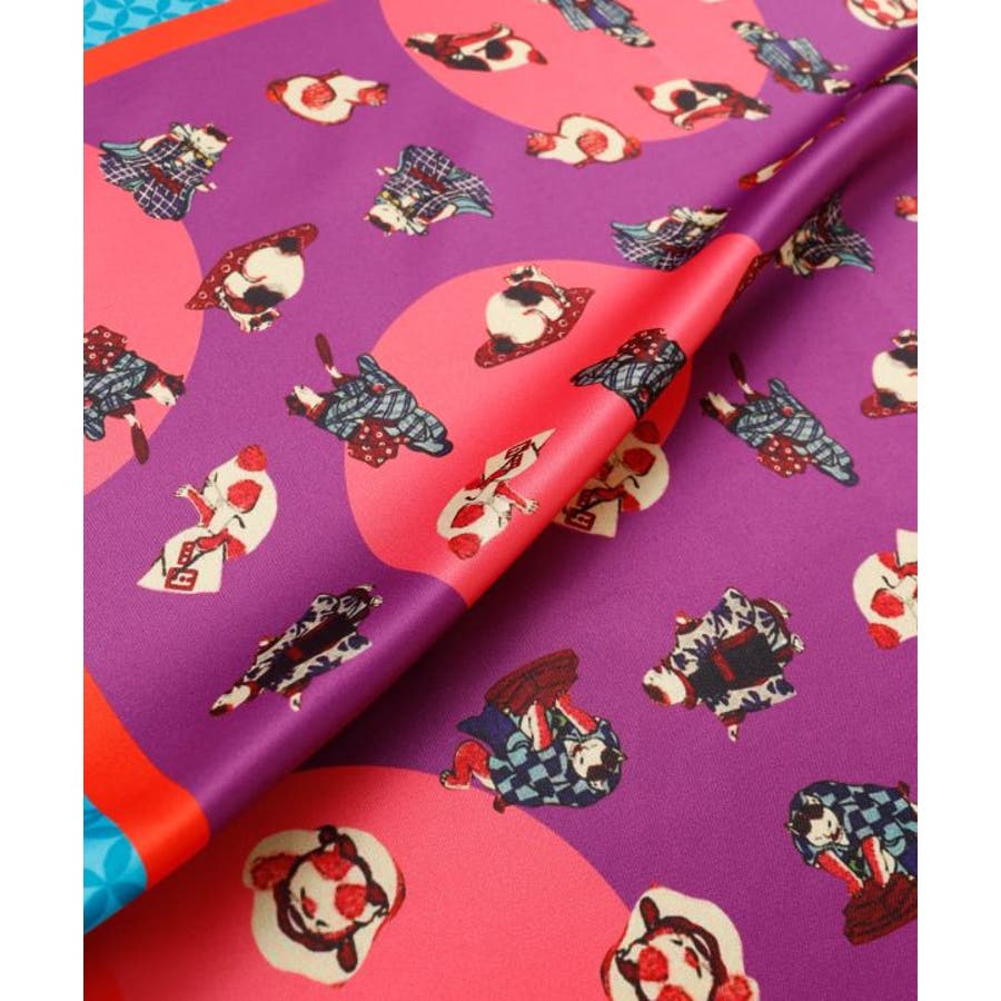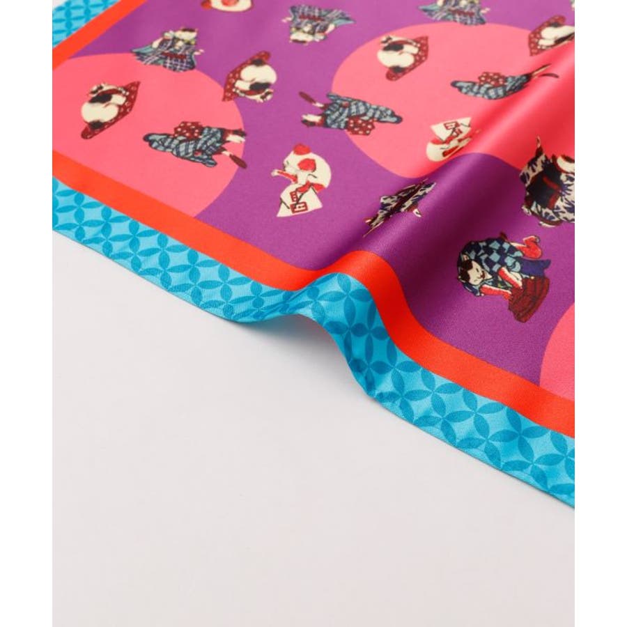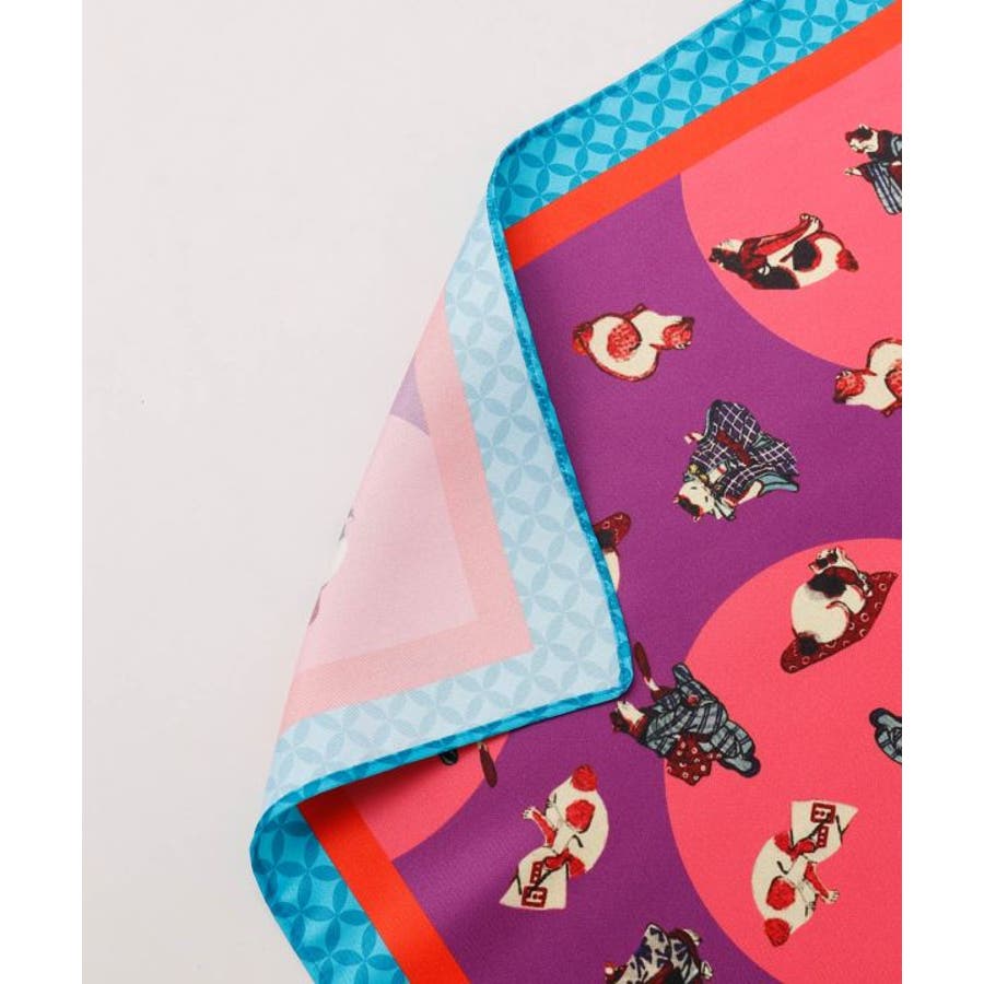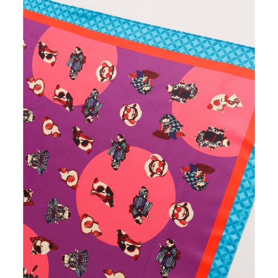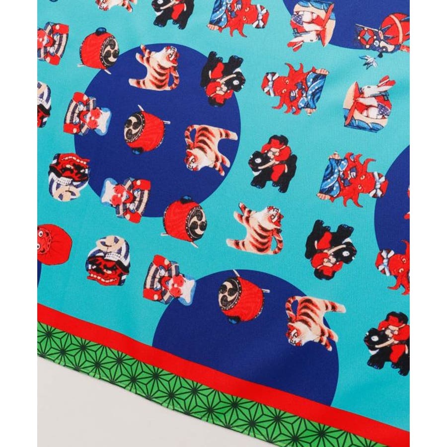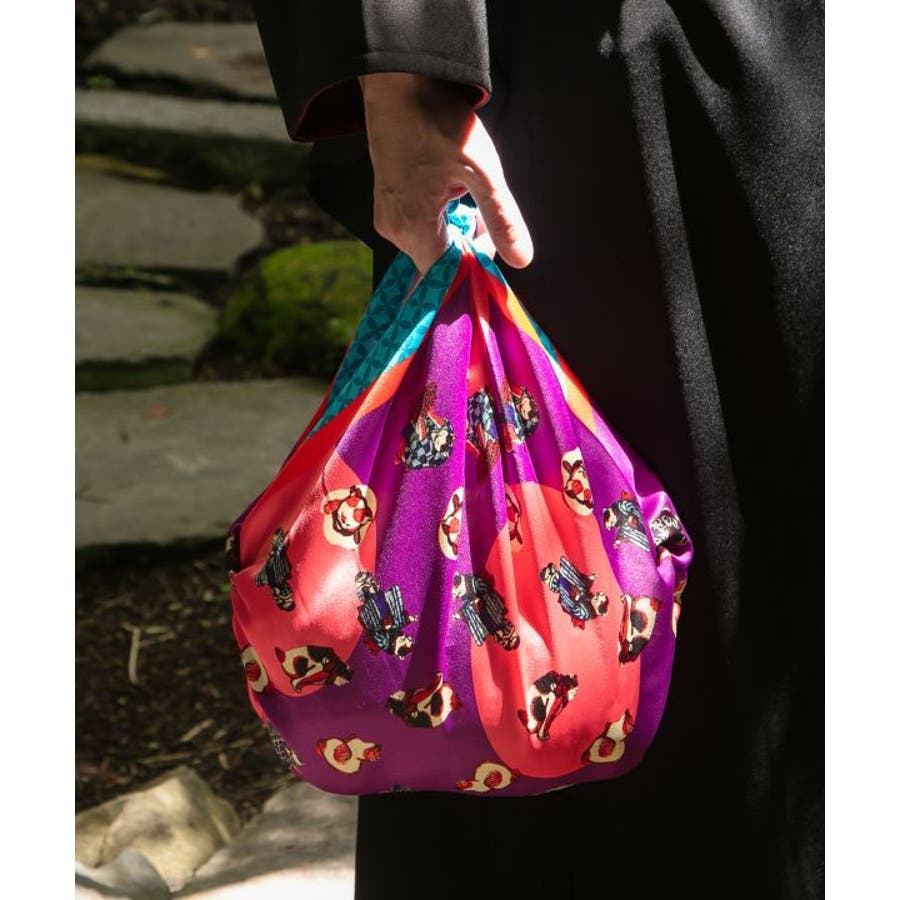 お面、民芸、猫の浮世絵を使ったカラフルな風呂敷。撥水加工がされているので、ちょっとした雨の日でも安心して使えます。