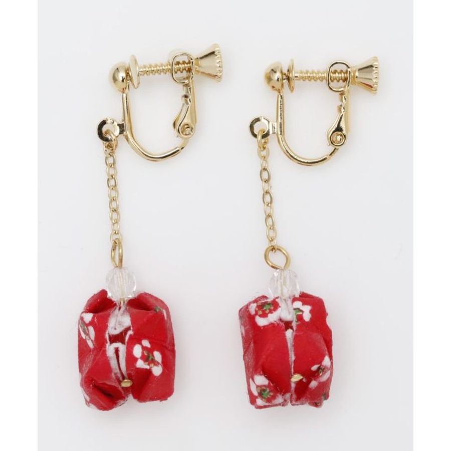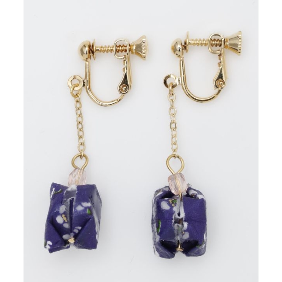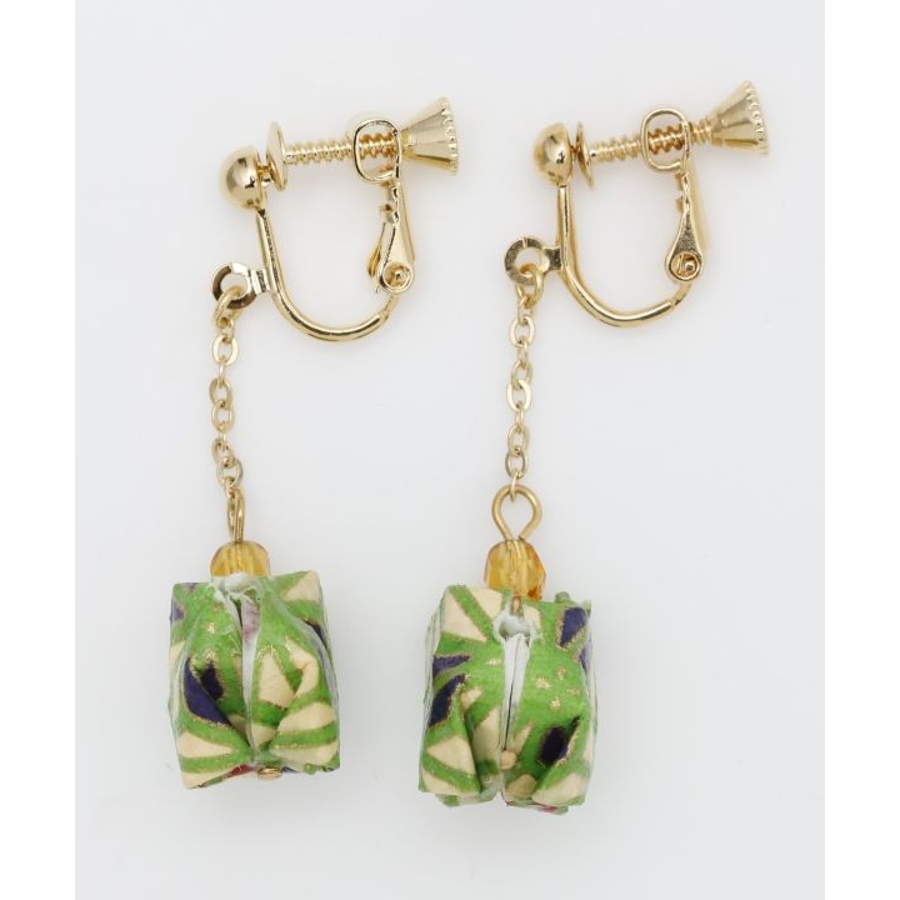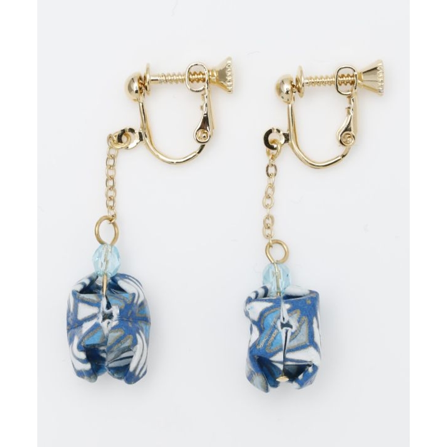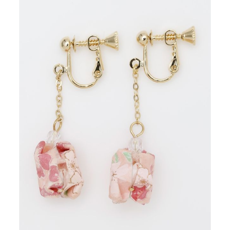 昔懐かしい日本の遊び「折紙」。折り紙を使用した紙風船モチーフのイヤリング。ぷっくりとした立体感が可愛らしい印象。