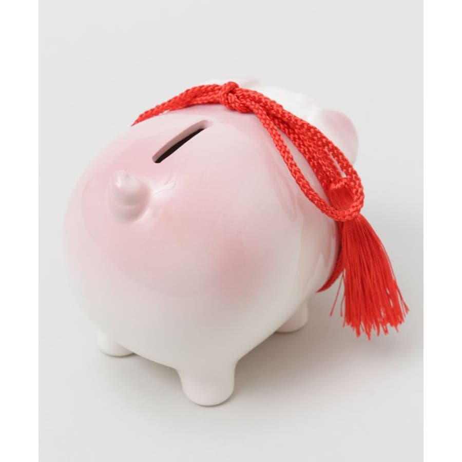 瀬戸焼で作られた豚の貯金箱。シンプルに仕上げたお顔にオリジナルのタッセル飾りがついてます。底にフタがついてるので、取り出し可能。ほどよいサイズ感で、日々の貯金や贈りものにもおすすめです。