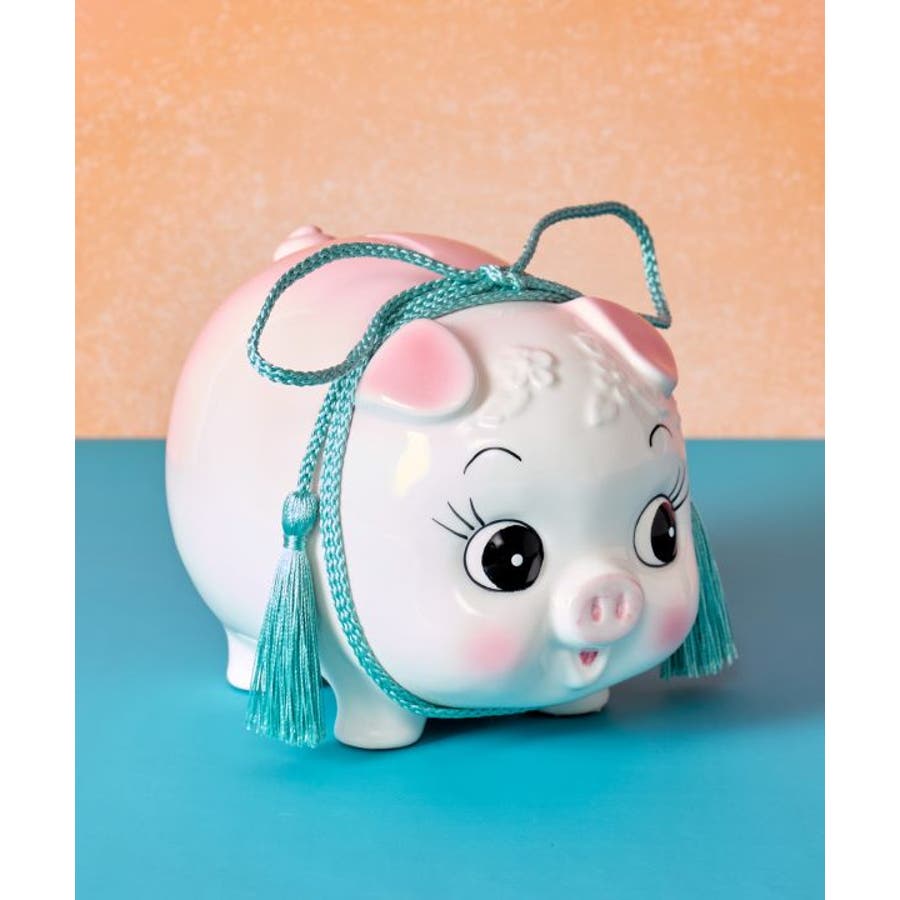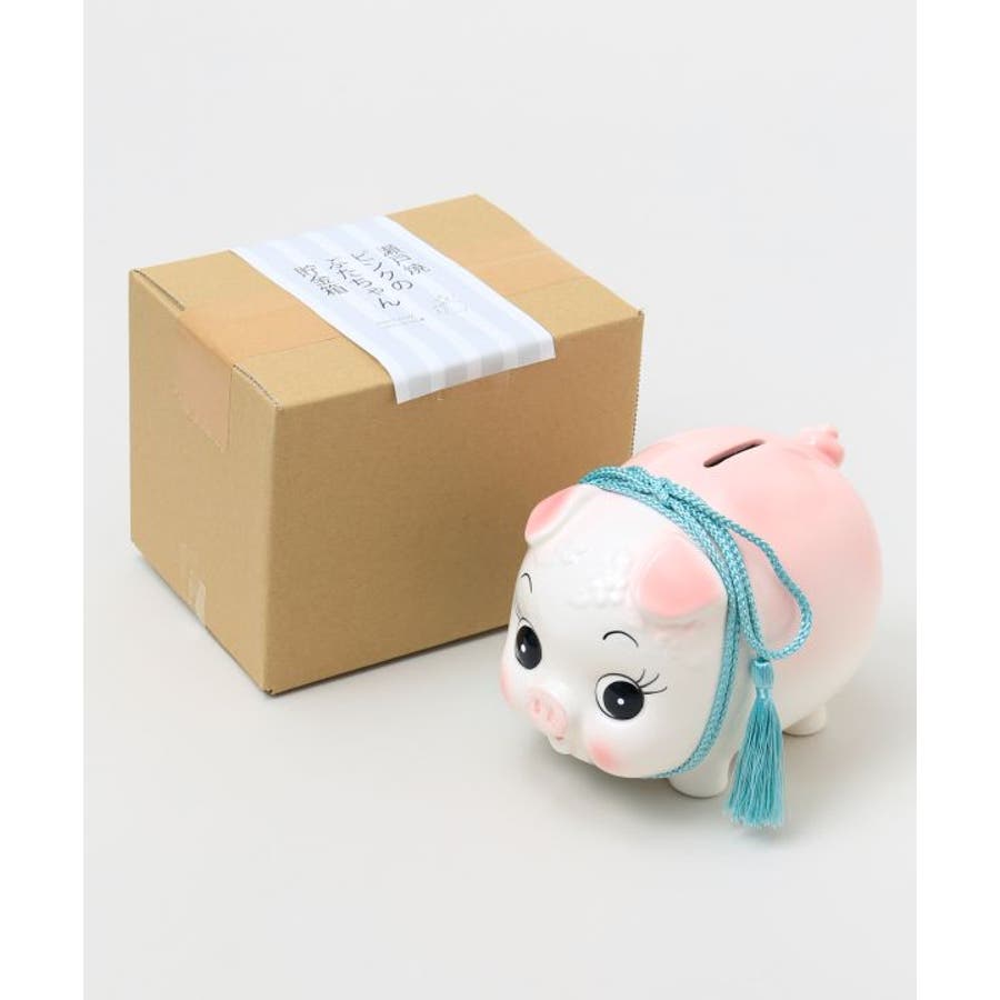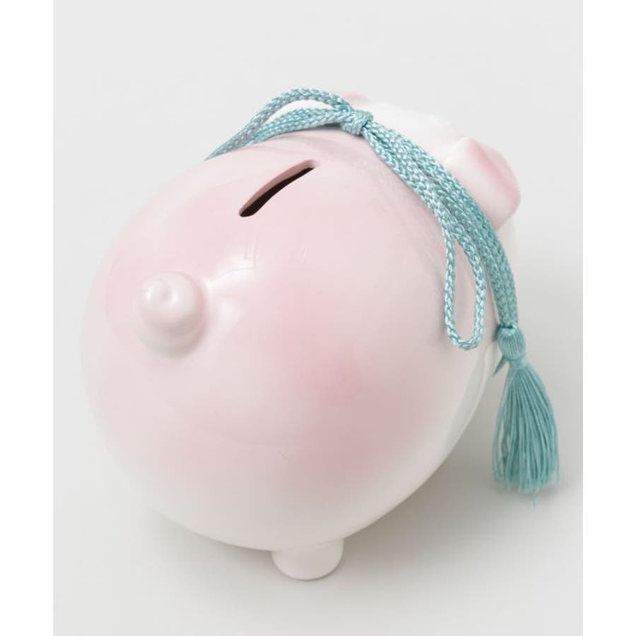 瀬戸焼で作られた豚の貯金箱。淡い桃色を差したやさしい表情が愛らしく、首元にはオリジナルのタッセル飾りがついてます。底面にはフタ付きで中身の取り出しも可能。存在感のあるサイズで、贈りものやインテリアのアクセントにもおすすめです。