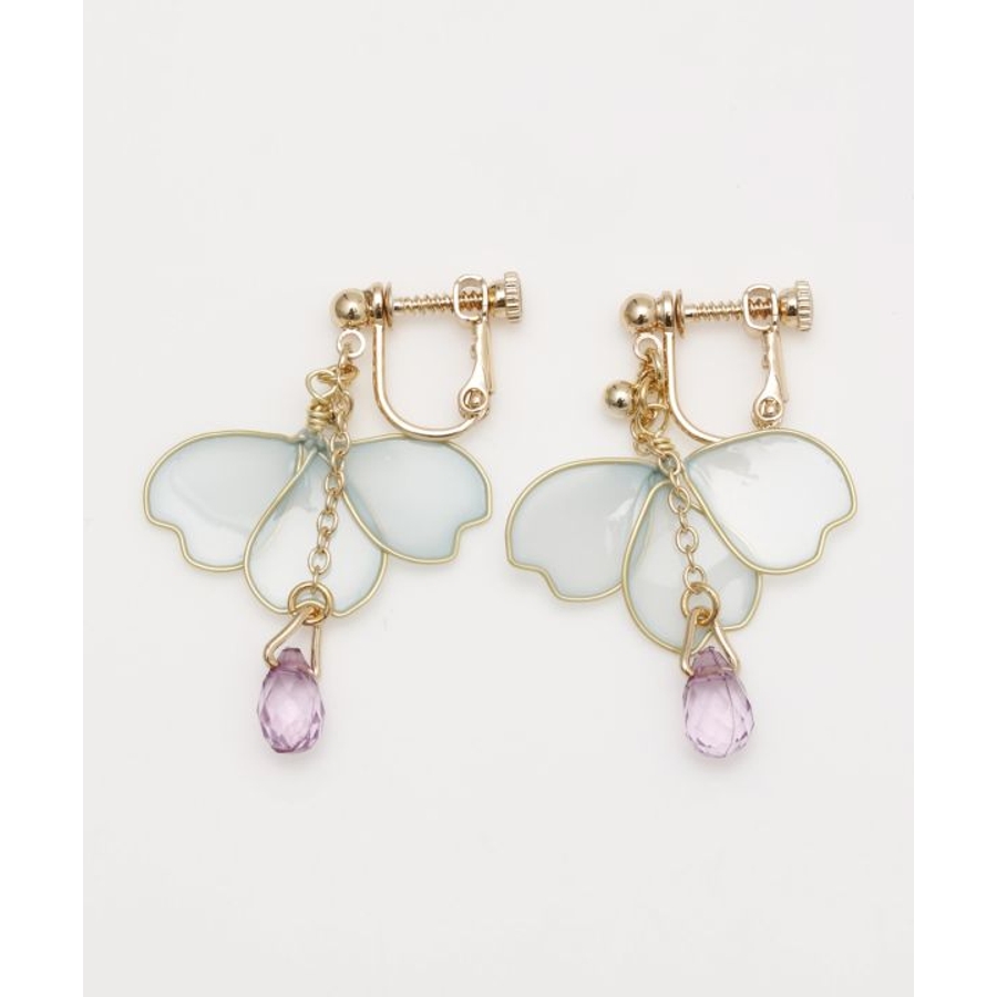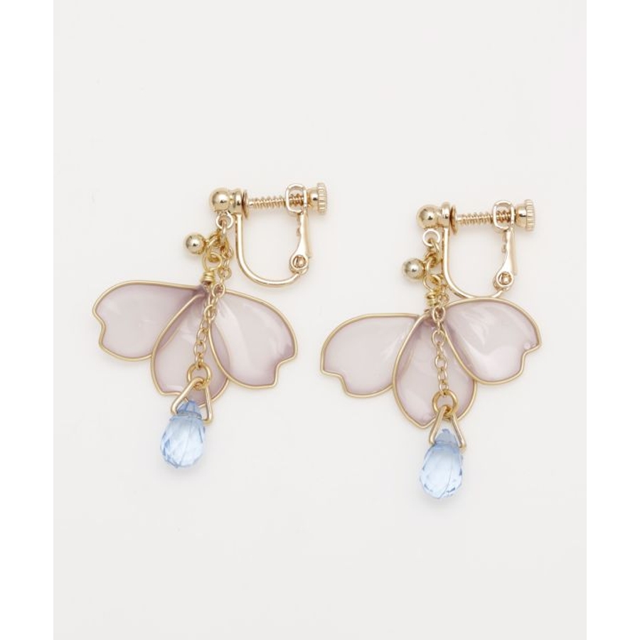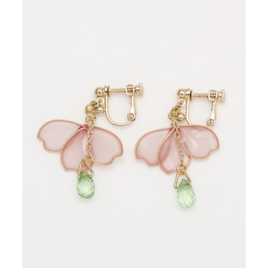 柔らかな色合いで桜の花を表現したイヤリング。透明感のある花びらに、きらりと輝くガラスビーズが上品な印象を与えてくれます。