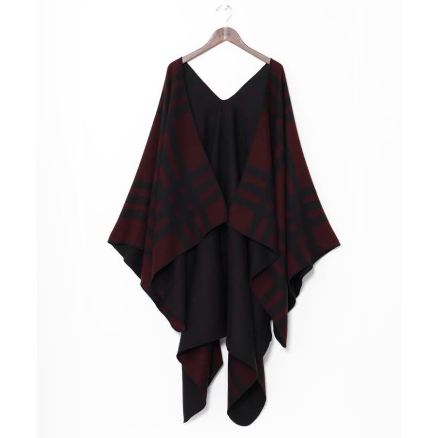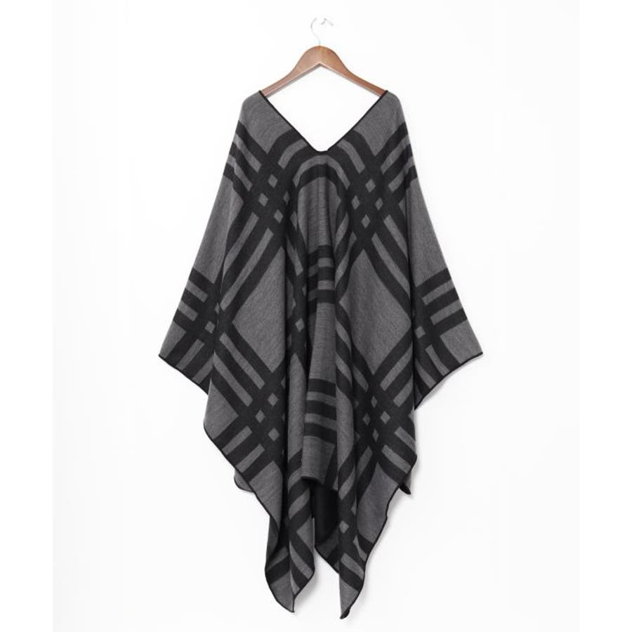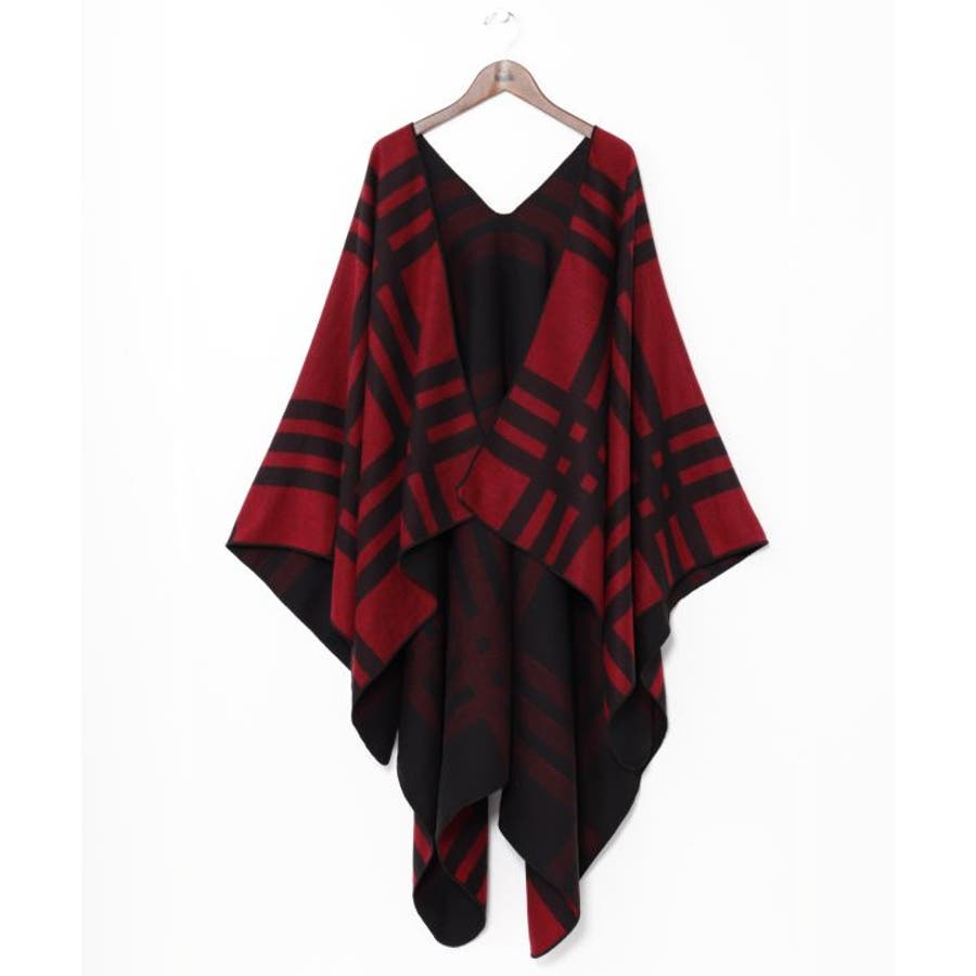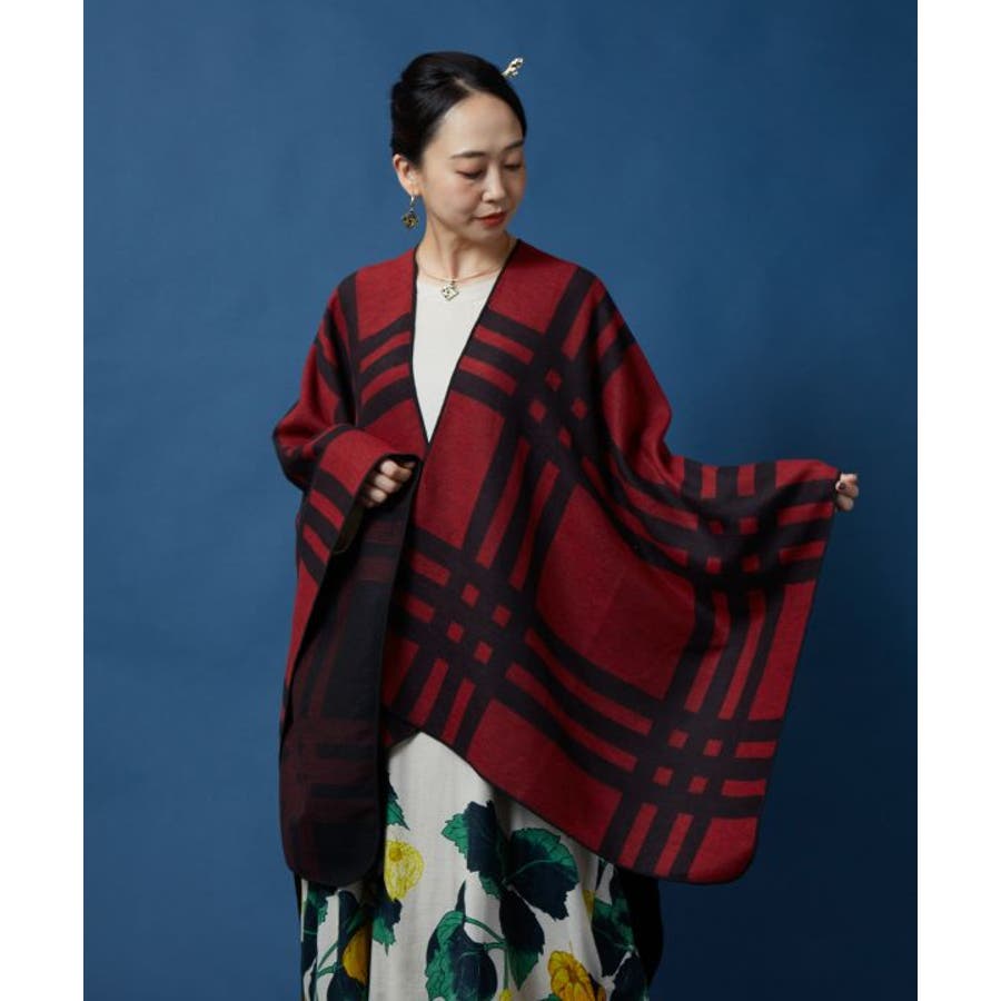 レトロな格子模様のストール。大判のサイズ感で、ポンチョやショールとして羽織ることも出来る優れものです。