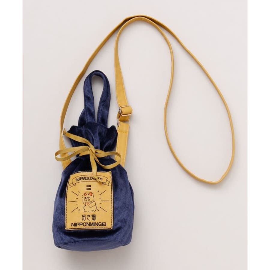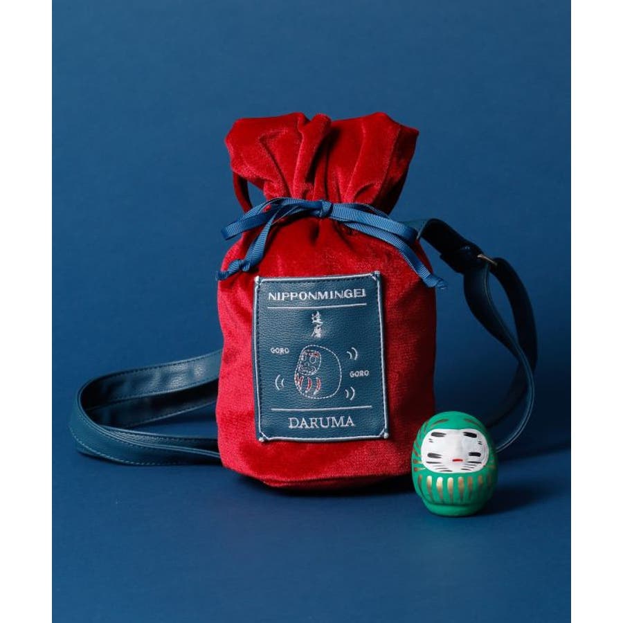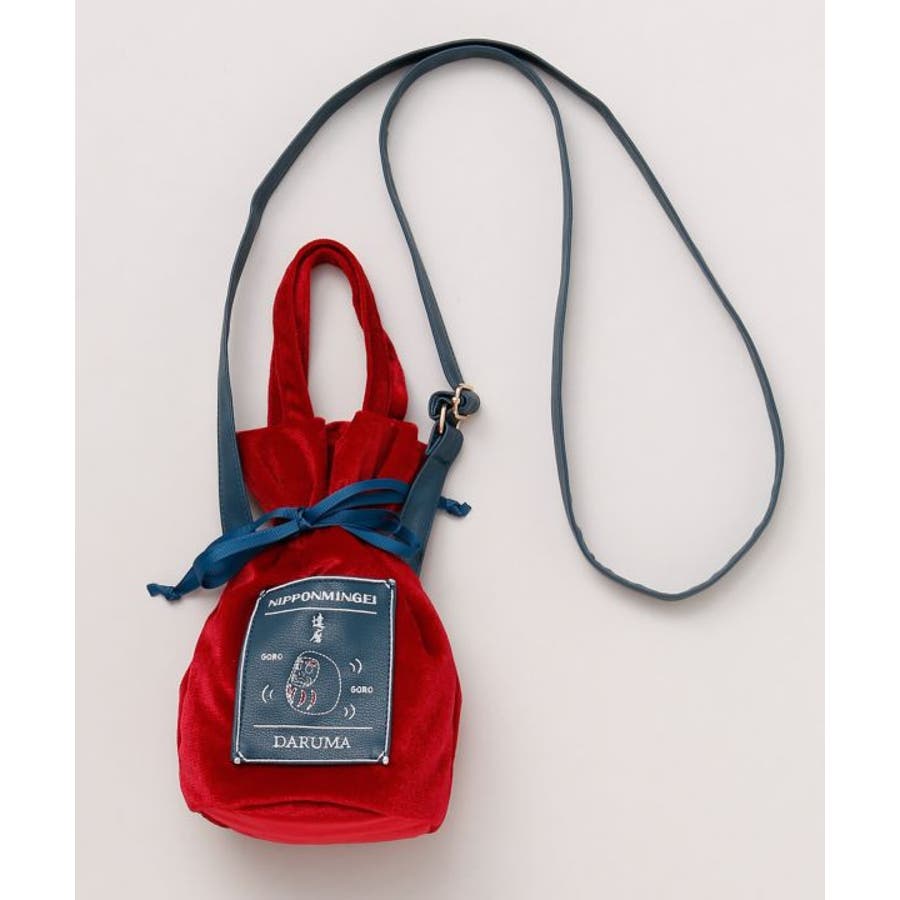 【カヤ】民芸ベロア巾着ミニショルダーバッグ