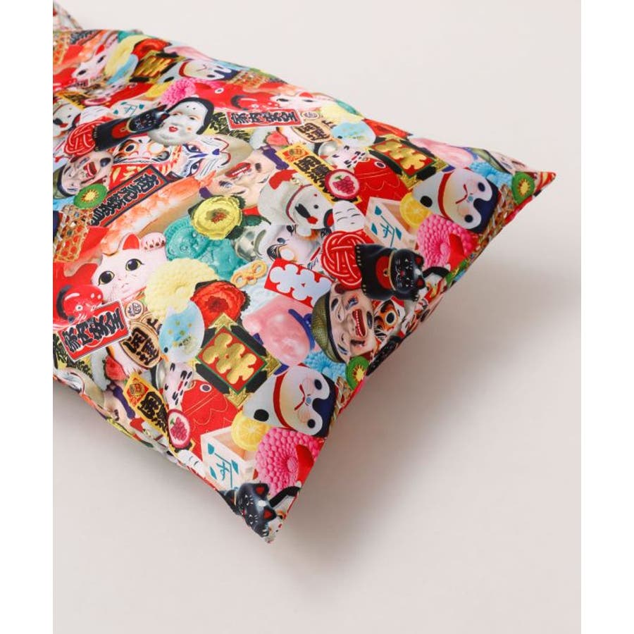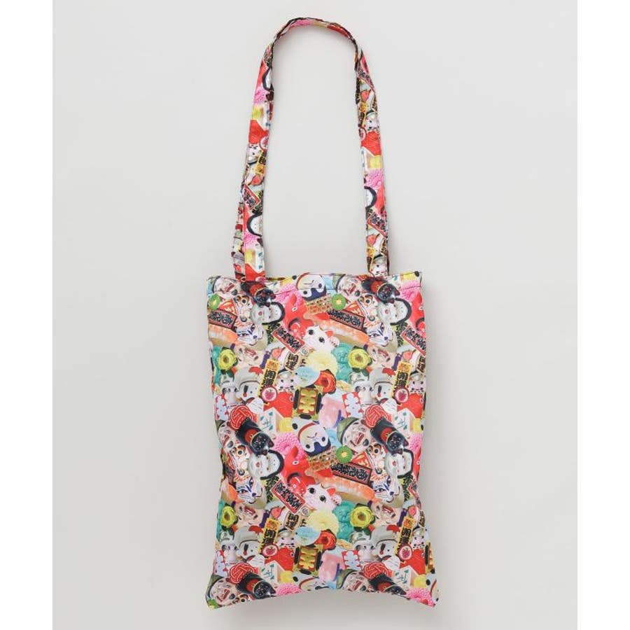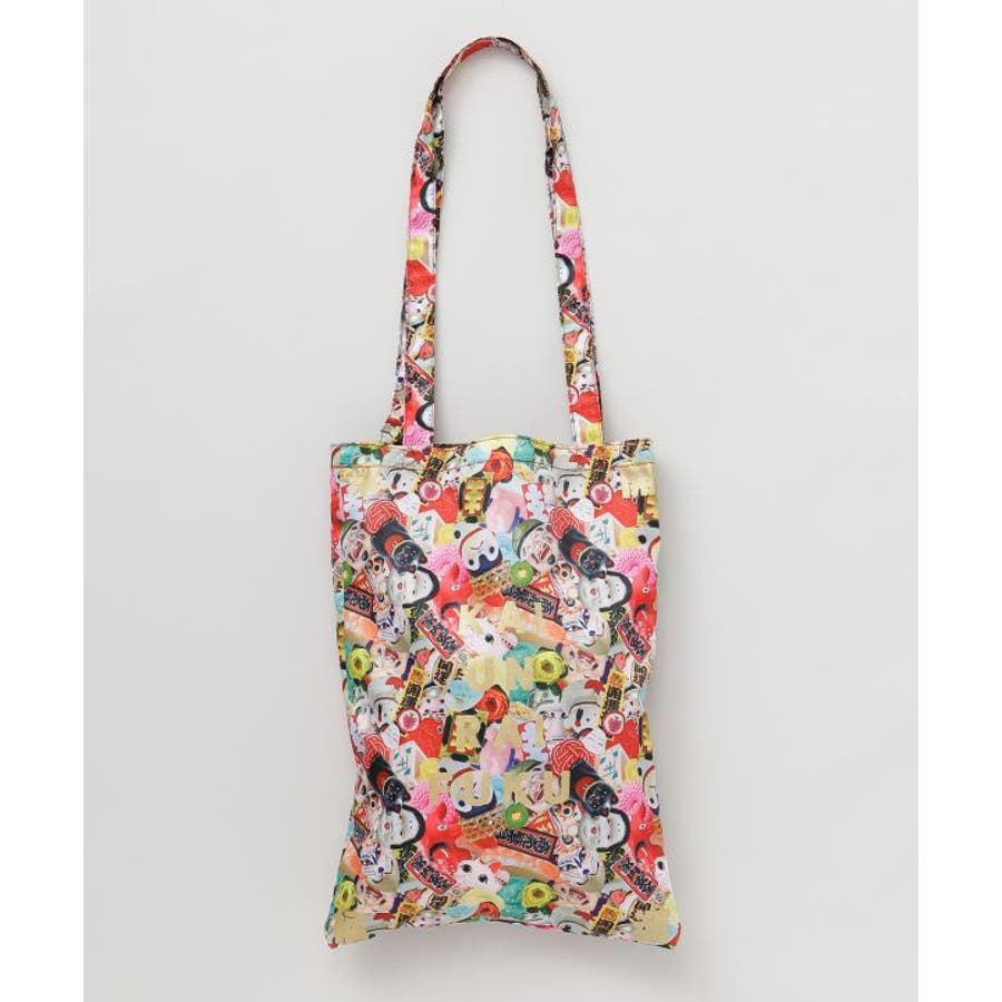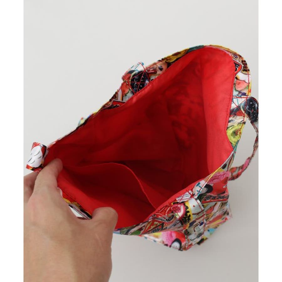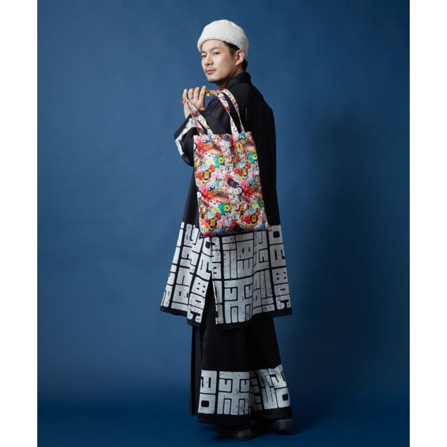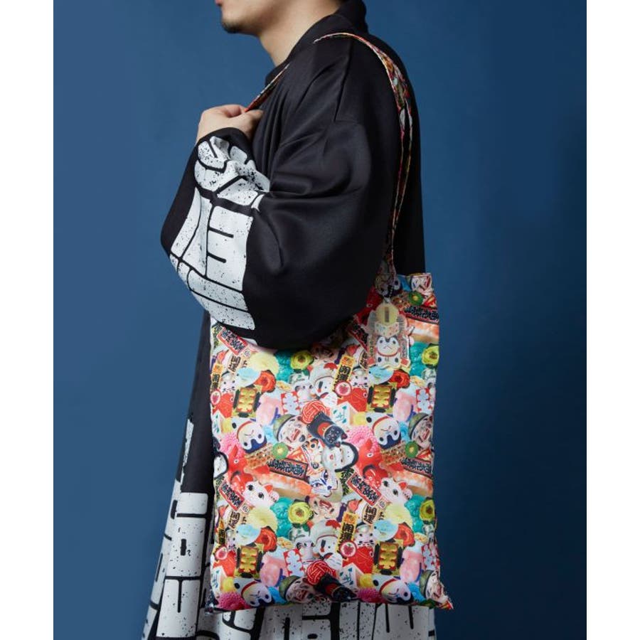 日本の縁起物や祝いものを詰め込んだ、賑やかな「開運来福」トートバッグ。使い勝手の良いA3サイズ。インパクト大のデザインで、普段使いはもちろん、お土産や贈り物にもおすすめです。内ポケット1つ付き。