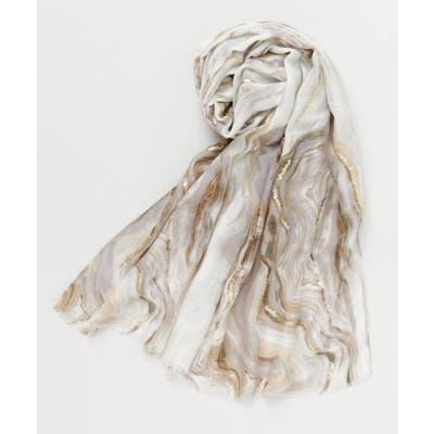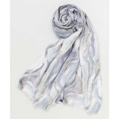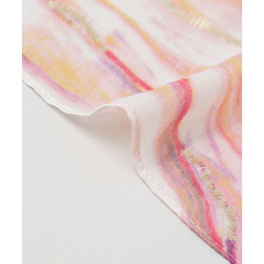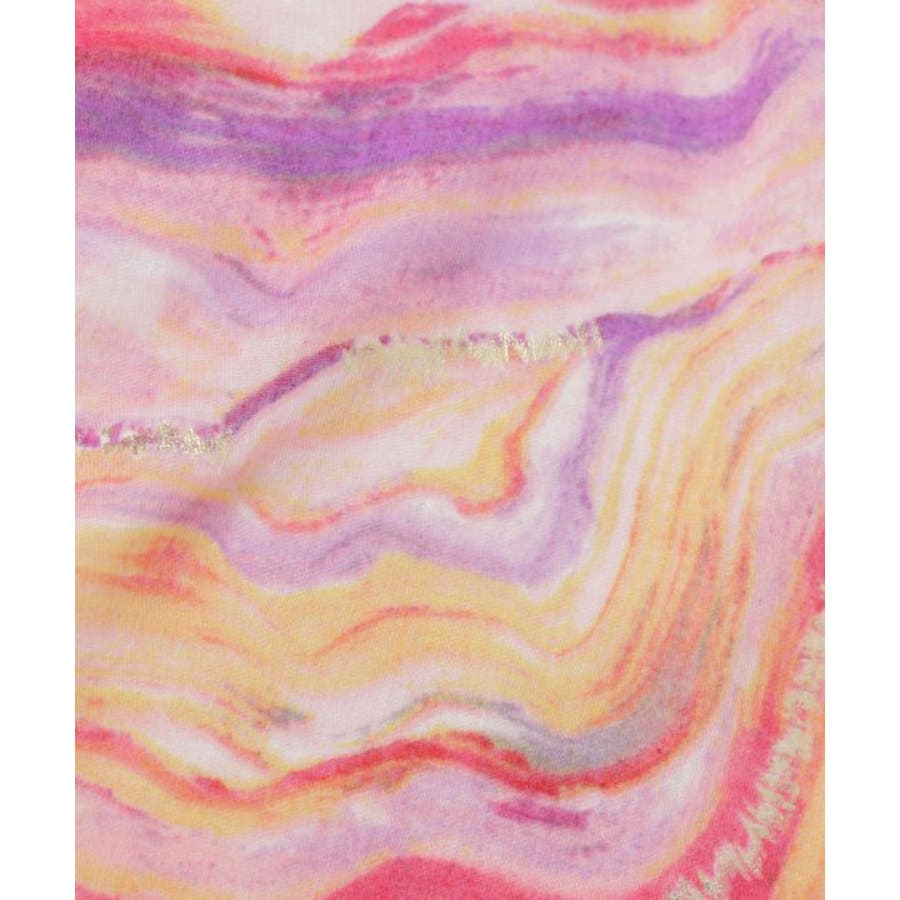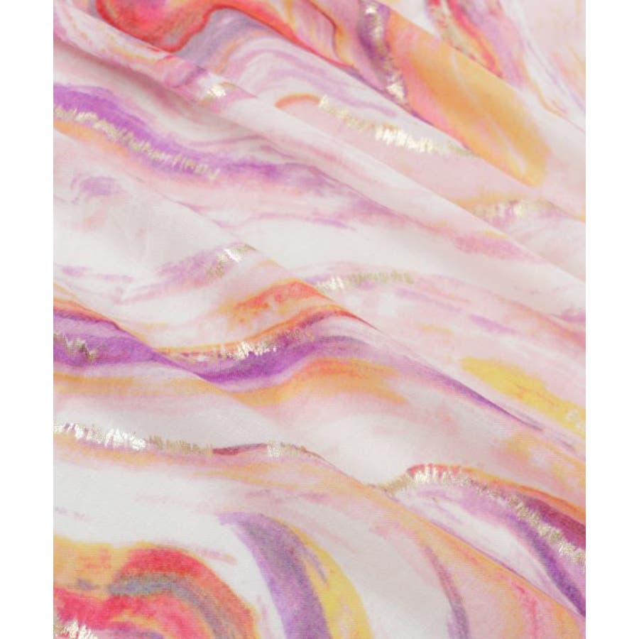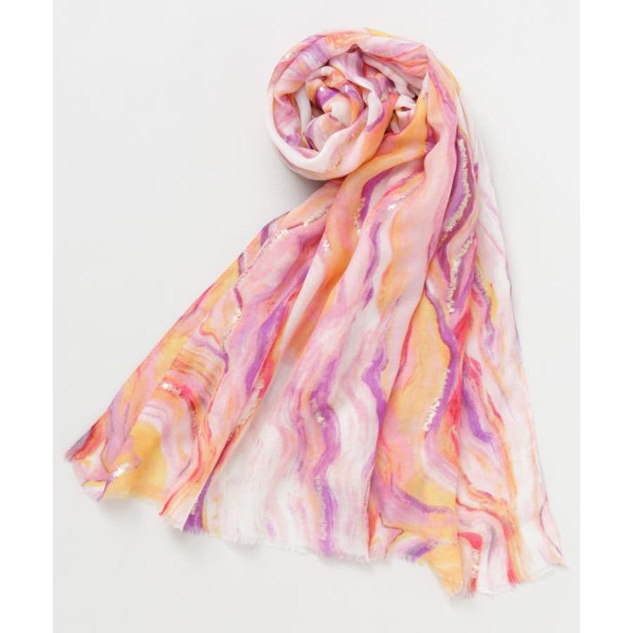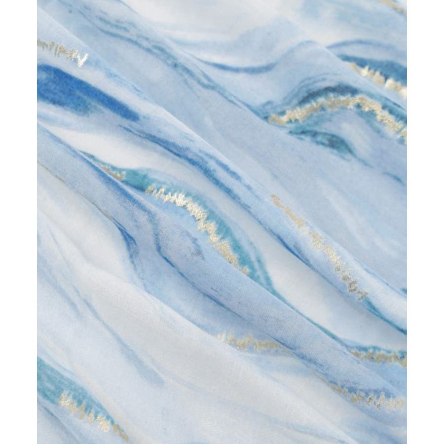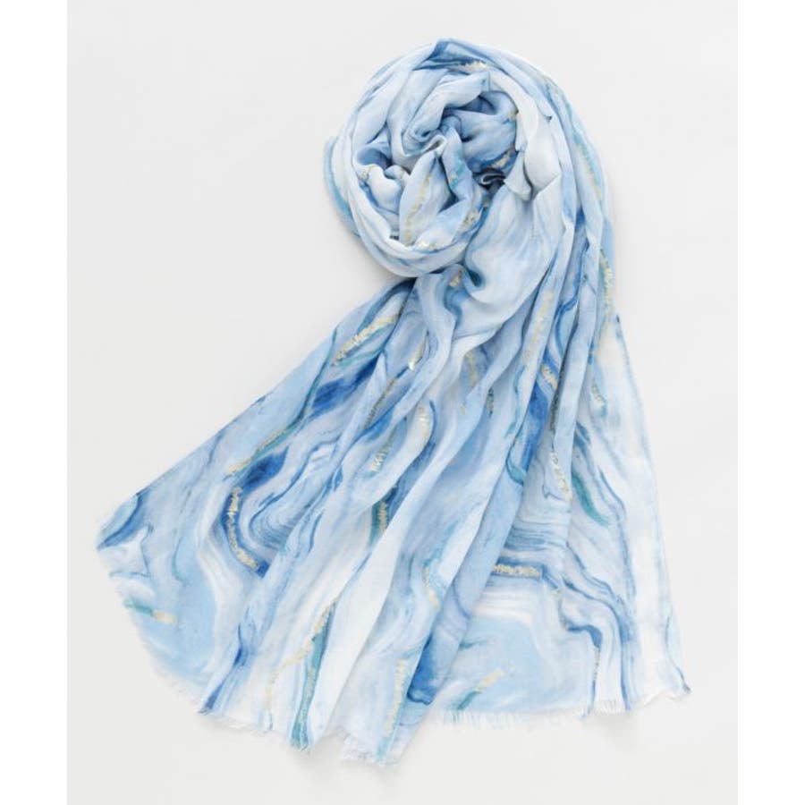 水面に映る光の揺らめきを思わせるマーブル模様が印象的な大判ストール。繊細な色の重なりとほのかな光沢が、巻くだけで上品な表情を演出します。軽やかな素材で肌なじみも良く、日よけや冷房対策にも最適。コーディネートに洗練されたアクセントを添える一枚です。