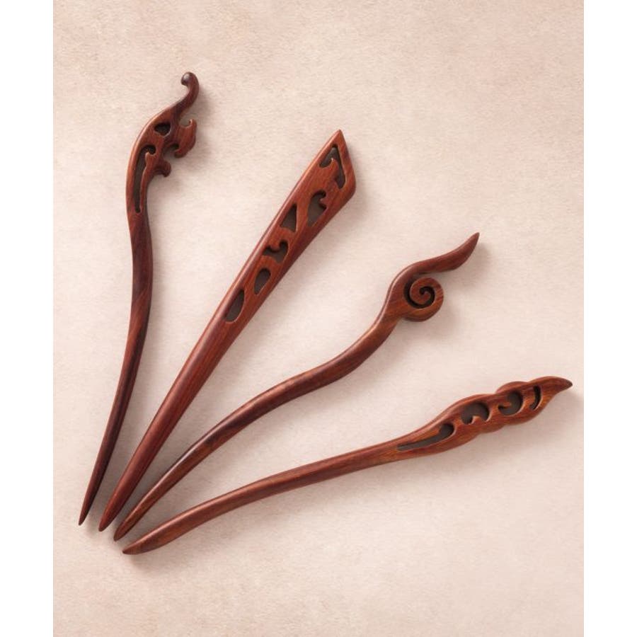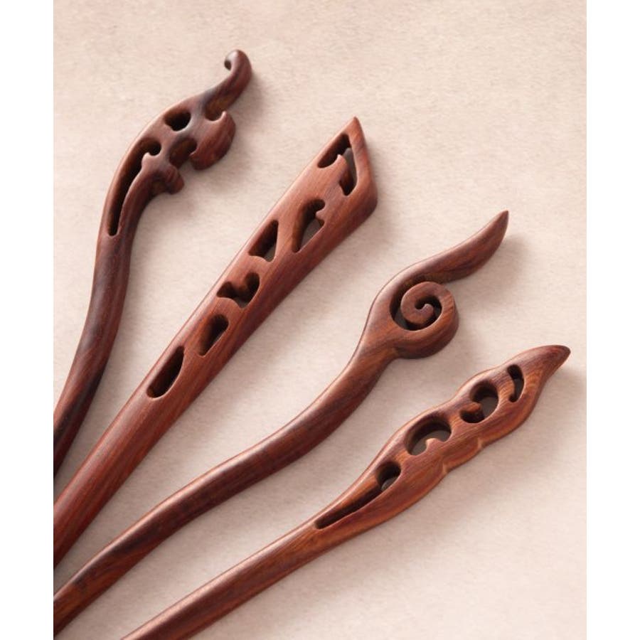 木そのものの素材感を活かした、シンプルな木彫りのかんざし。滑らかでしっかりとした軸で、髪の毛をしっかりとまとめることが出来ます。普段の装いはもちろん、着物に合わせてもシックな印象に。