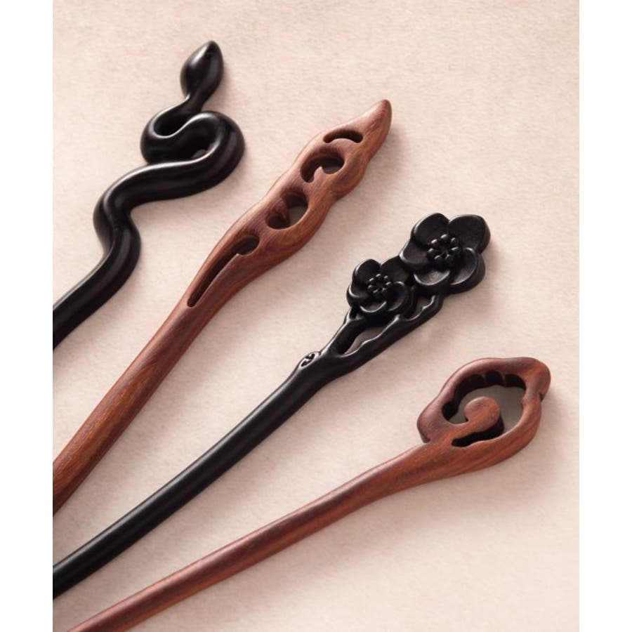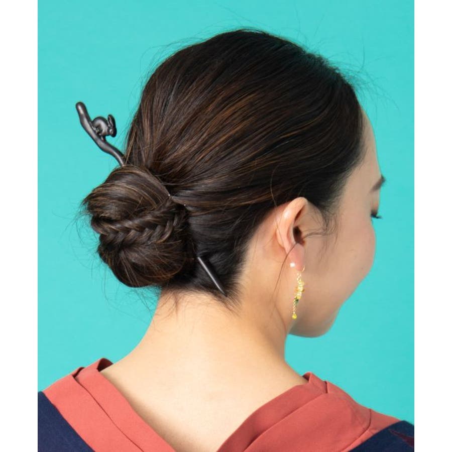動物モチーフを木彫りで表現したかんざし。滑らかでしっかりとした軸で、髪の毛をしっかりとまとめることが出来ます。普段の装いはもちろん、着物に合わせてもシックな印象に。