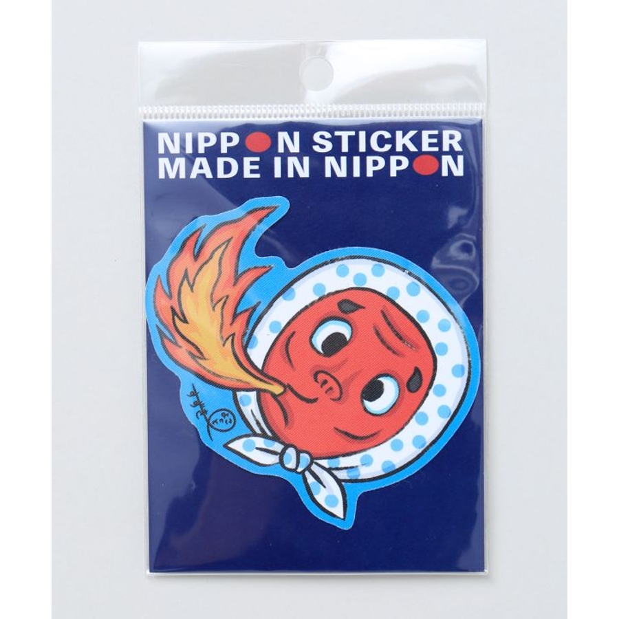 【倭物やカヤ×鈴木ひょっとこ】伝統×現代の融合を魅力的に描く、画家・鈴木ひょっとことのコラボ商品。作品「ひょっとコンロ」から抜け出したひょっとこがステッカーに。耐久性に優れた特殊素材を使用しており、キャリーバッグなどにも安心して貼れるアイテムです。