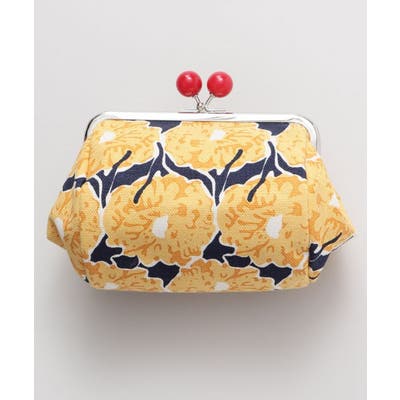 大胆な柄と魅力的な色合わせが印象的なレトロヴィンテージがまシリーズ。たっぷり入る俵型のがま口ポーチ。大きく開いて入れやすく、コスメや小物入れにぴったりです。
