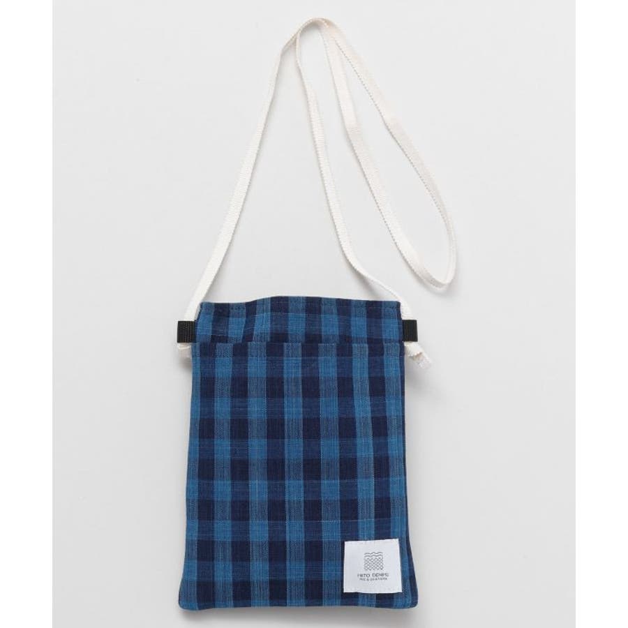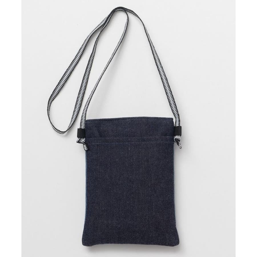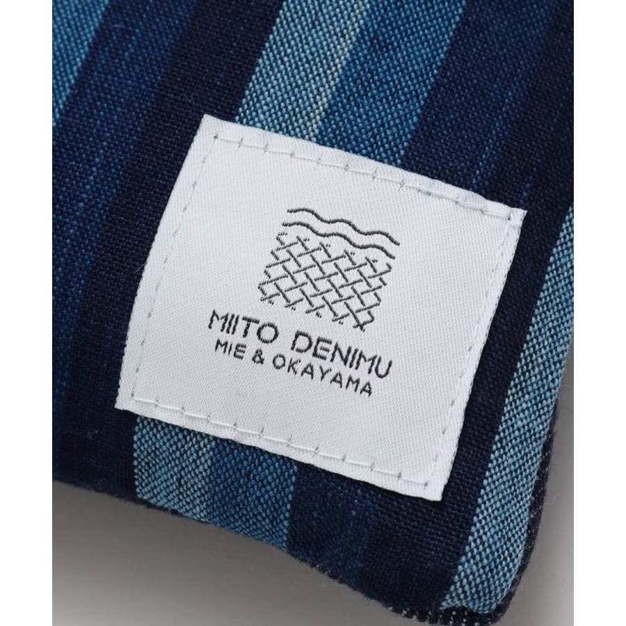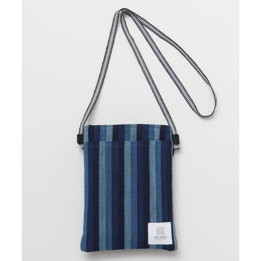 スマホや財布がすっぽり入るミニショルダー。デニムは岡山県井原市で織りたてられた「井原デニム」。使い込むほどに風合いが出る云わずと知れた伝統生地です。「みいと織り」は三重県産。天然藍で糸から染め織り、藍の綺麗な風合いが特徴。今では日本で1軒しか作っておらず国の無形民俗文化財に選定されています。紐部分には岡山県倉敷市で織られた「真田紐」を使用。昔甲冑にも使われた丈夫で伸びにくい素材。3つの生地を京都で仕上げました。