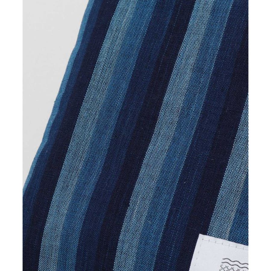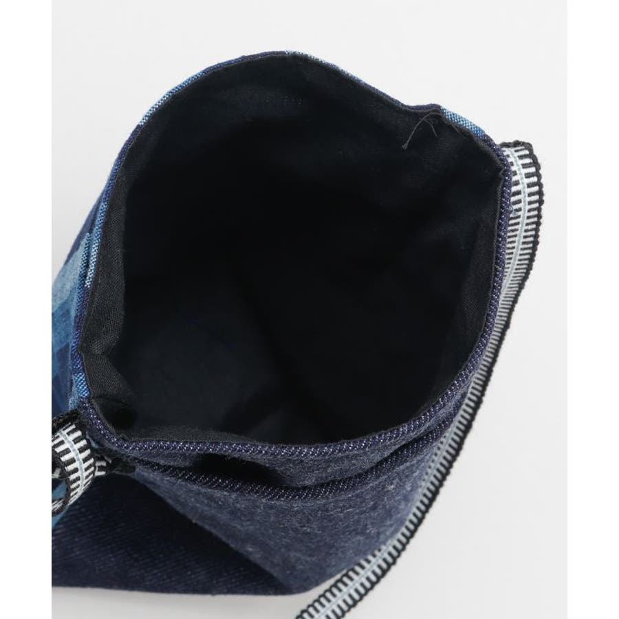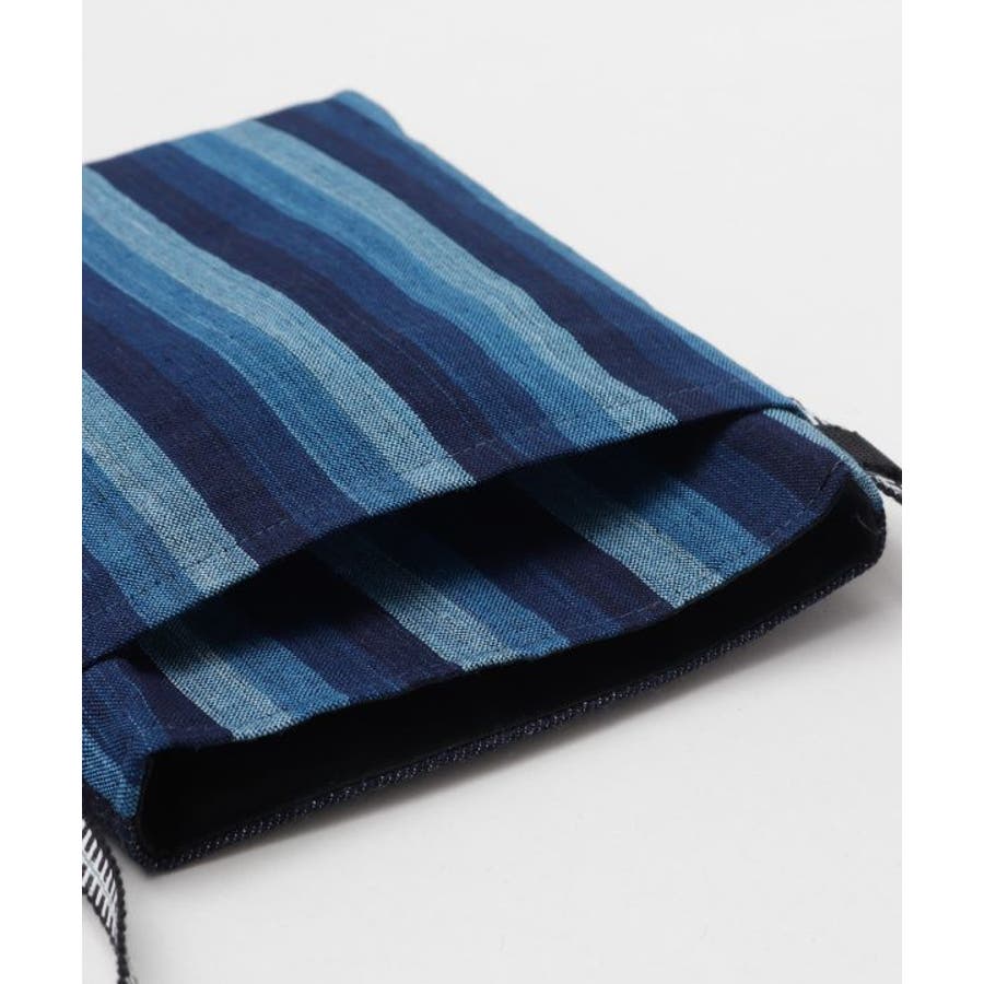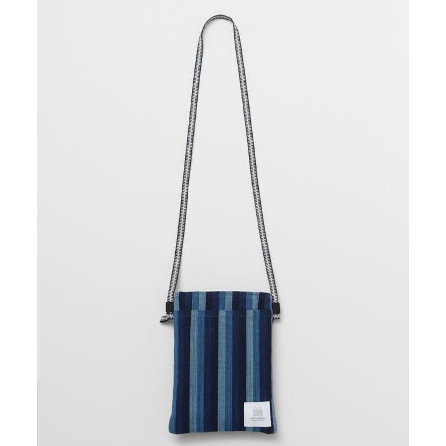 スマホや財布がすっぽり入るミニショルダー。デニムは岡山県井原市で織りたてられた「井原デニム」。使い込むほどに風合いが出る云わずと知れた伝統生地です。「みいと織り」は三重県産。天然藍で糸から染め織り、藍の綺麗な風合いが特徴。今では日本で1軒しか作っておらず国の無形民俗文化財に選定されています。紐部分には岡山県倉敷市で織られた「真田紐」を使用。昔甲冑にも使われた丈夫で伸びにくい素材。3つの生地を京都で仕上げました。