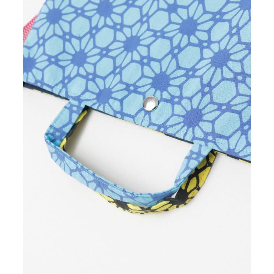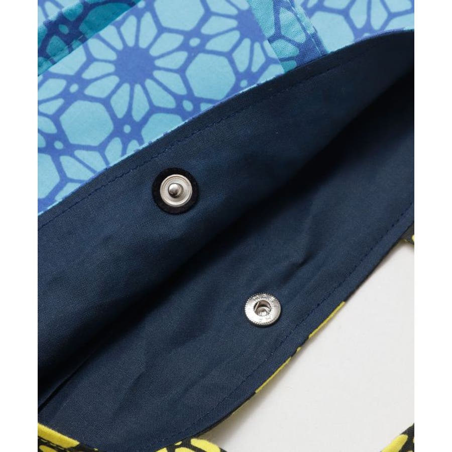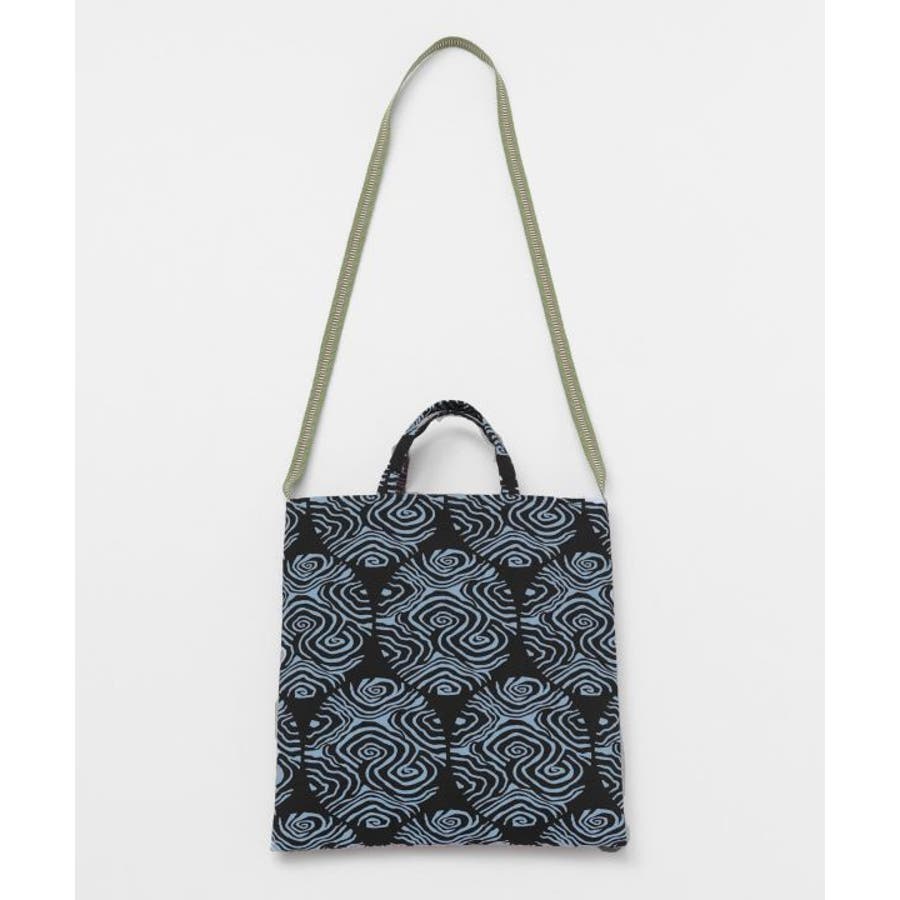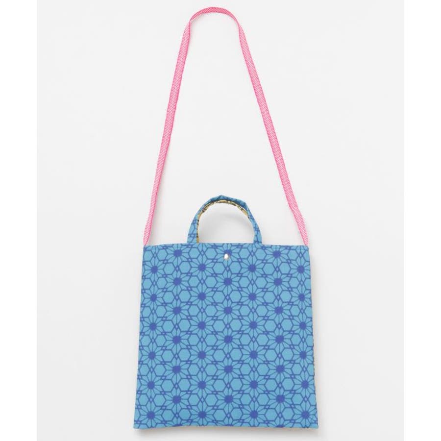 日本の伝統的な技法で染めた「注染手拭」を使用したトートバッグ。真田紐を使用したショルダー紐付き、柄は北斎模様より抜粋。オールジャパンメイドの、こだわりが詰まったアイテムです。内ポケット付き。