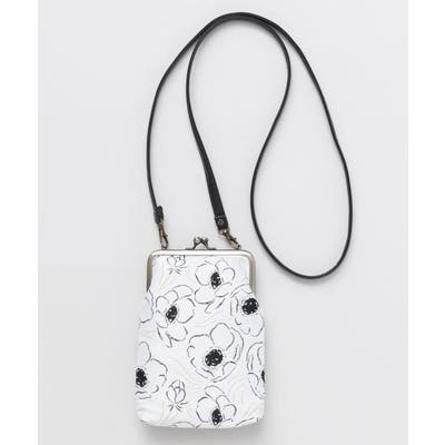 春の野原に咲く可愛らしい花々をモチーフにした携帯が入るがま口ショルダーバッグ。ショルダーは取り外し可能。ジャガード織りなので高級感があり、金糸を織り込んだ上品な仕上がりで柄の主張が少ないのでどんな服でも合わせやすいです。春に向けて気持ちを切り替える一品。