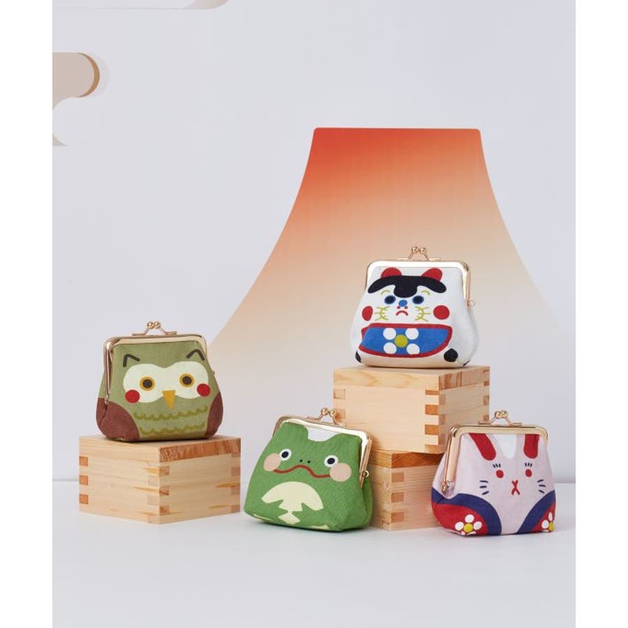 ころんと可愛いサイズのがま口シリーズ。日本の民芸品や縁起物をがま口に。犬張子は子供のお守り。うさぎは飛躍。かえるは福が返る。ふくろうは不苦労の語呂合わせ。小銭はもちろん、飴や薬を入れられる携帯サイズ。