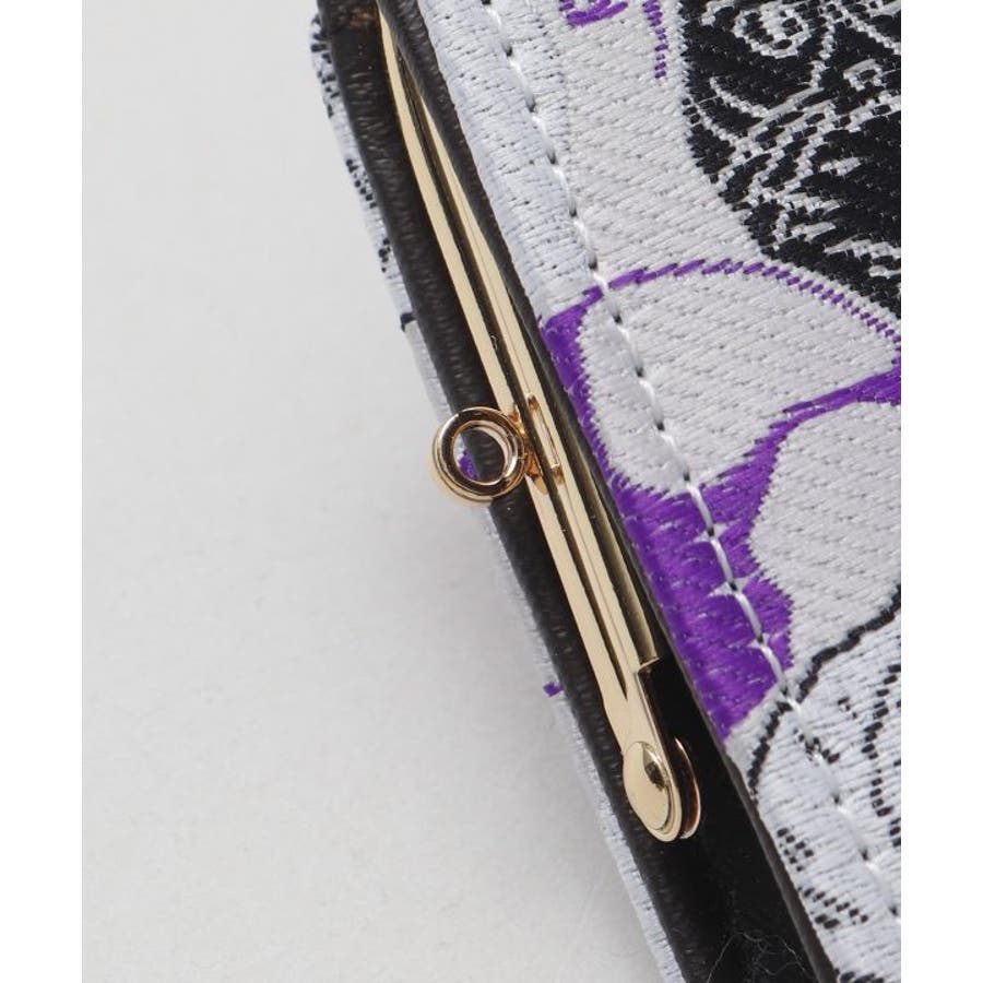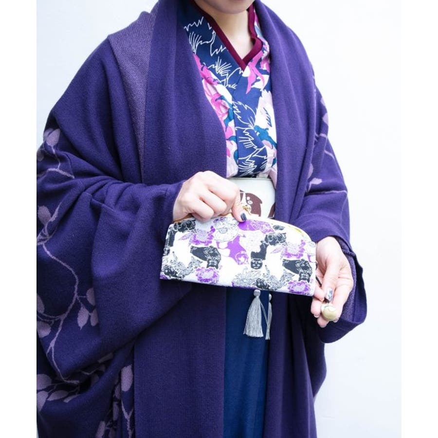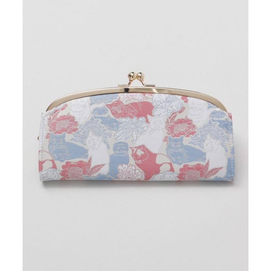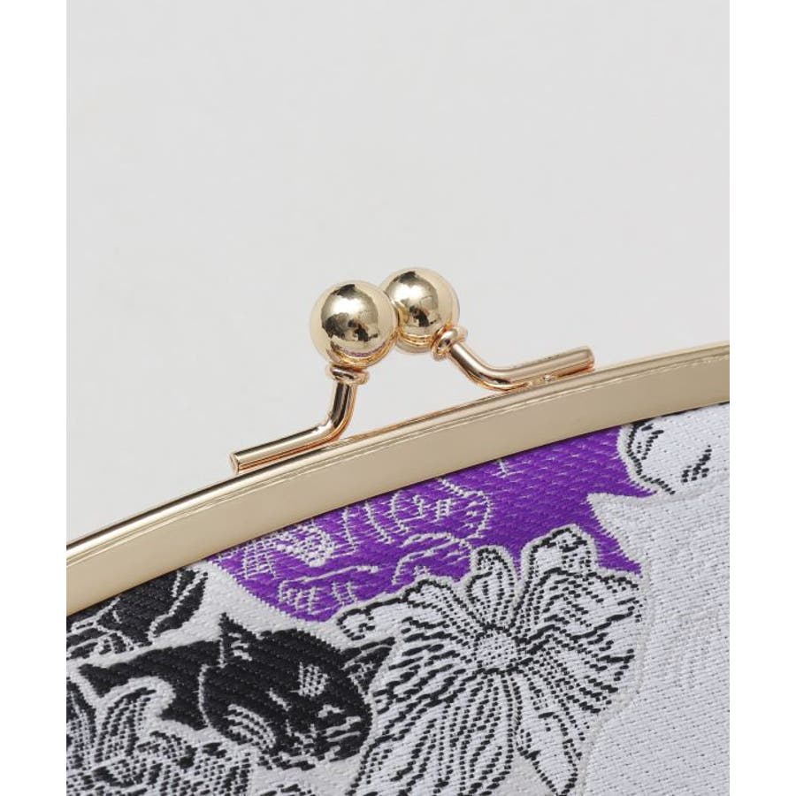 お札を折らずに入れられる長財布。カードの収納も豊富。可愛らしい猫たちと花々が描かれたデザイン。優しい色合いの桃と大人な色合いの紫が上品でモダンな印象。