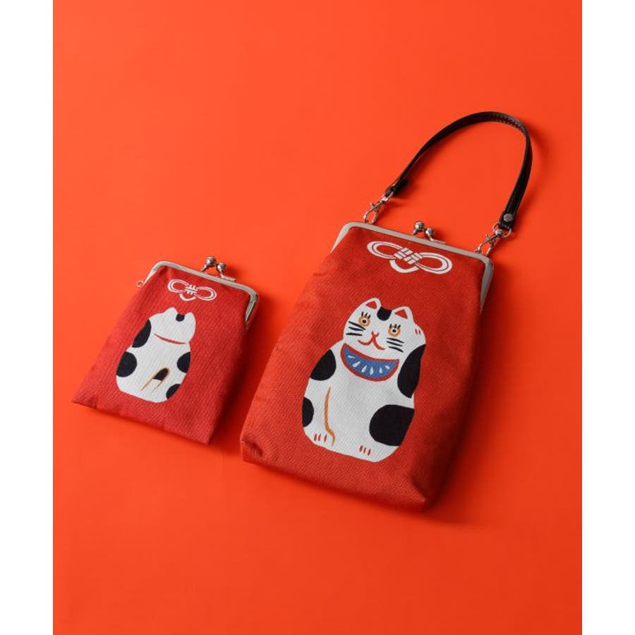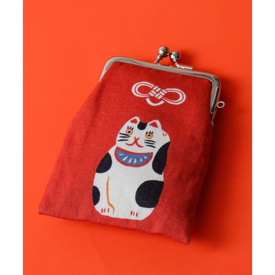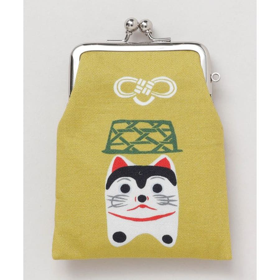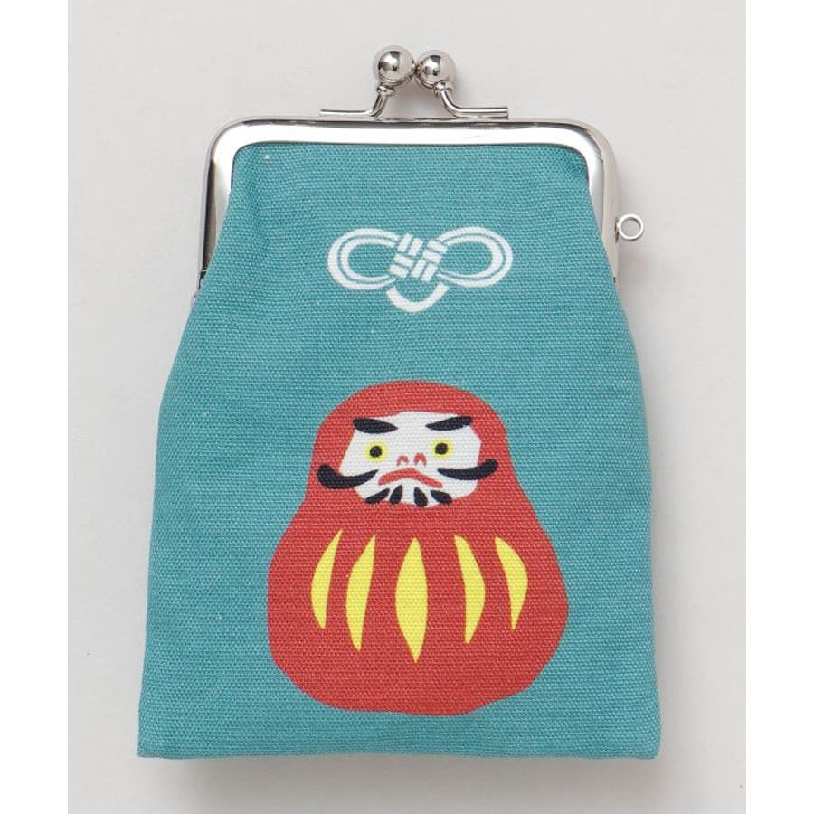 縁起の良い民芸たちを描いた、愛らしい「お守り」デザインのがま口。カードや名刺が収納できる便利なサイズ。フラットなシルエットなので、小さめのバッグの中でも場所を取りません。
