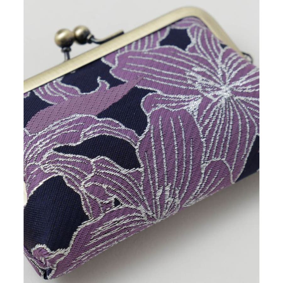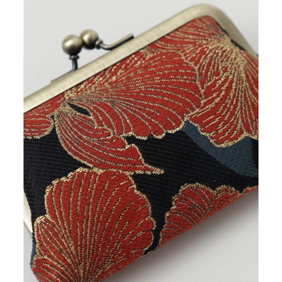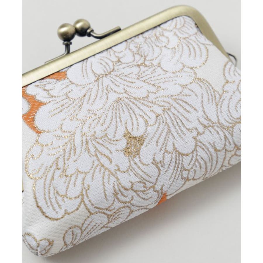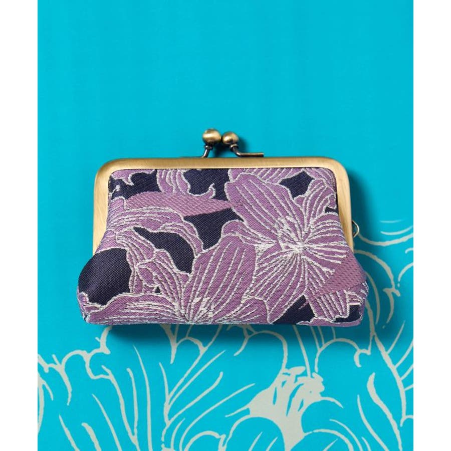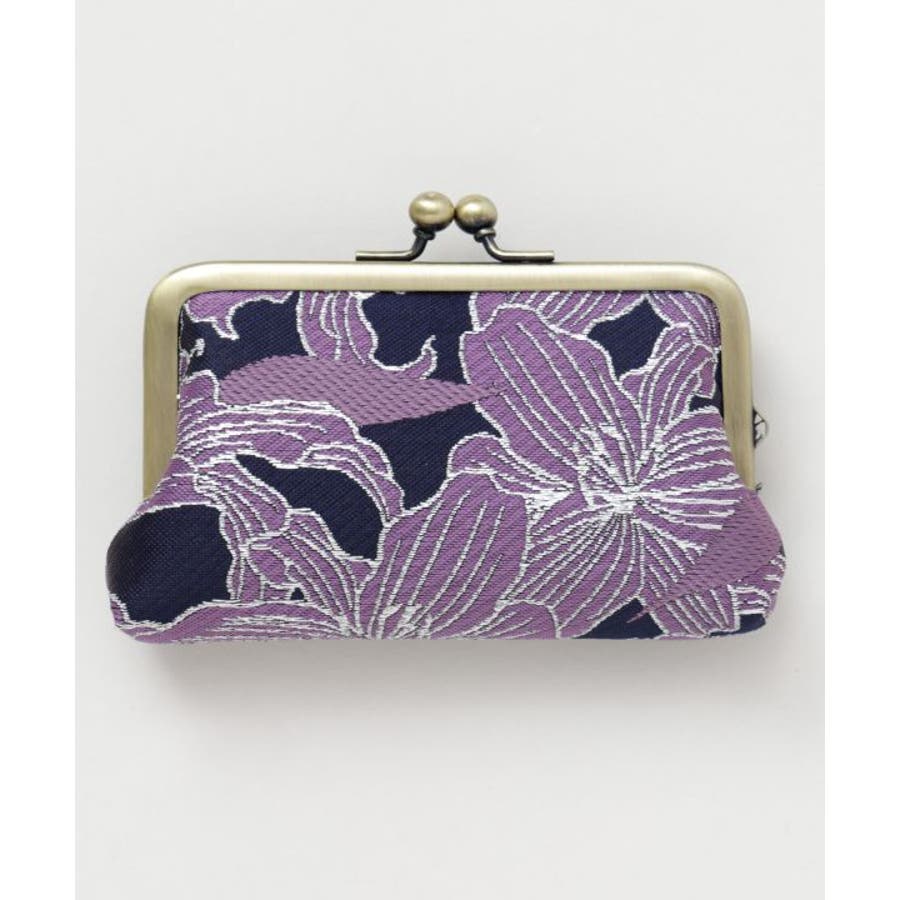 金鳳花(きんぽうげ)、芍薬(しゃくやく)、百合(ゆり)の花々を金銀のジャガード織りで上品に表現したがま口小物入れ。織りの光沢が上品にきらめき、伝統の和柄をモダンに仕上げています。手のひらに収まるサイズ感で、小銭やアクセサリー、お守り入れにもぴったり。気品あるデザインは、和装小物としても贈り物としてもおすすめです。