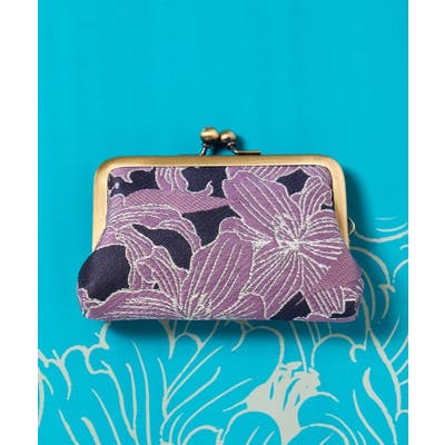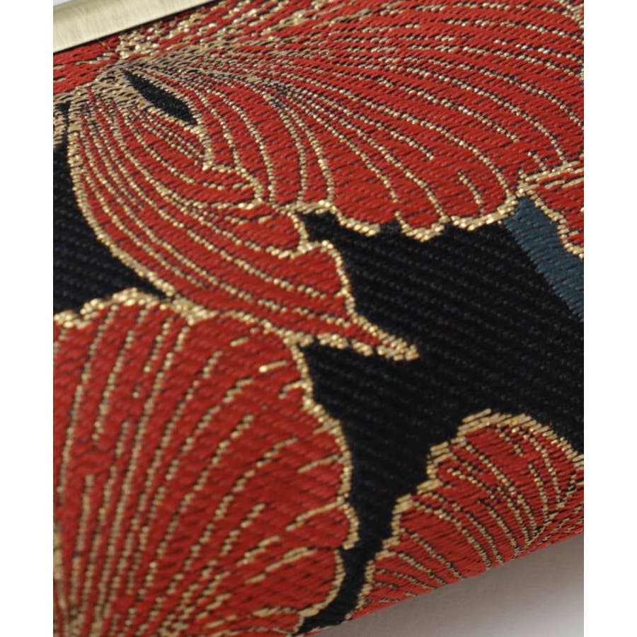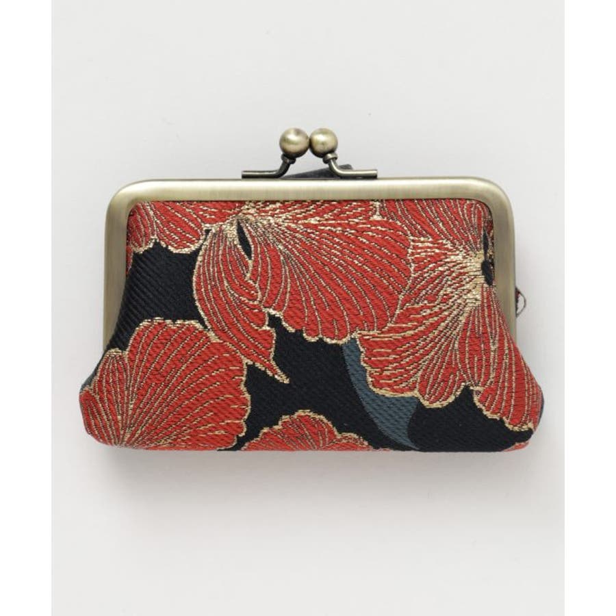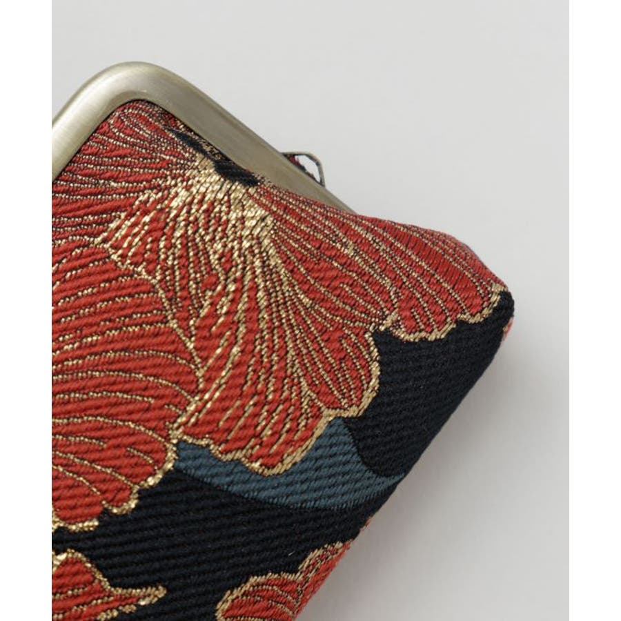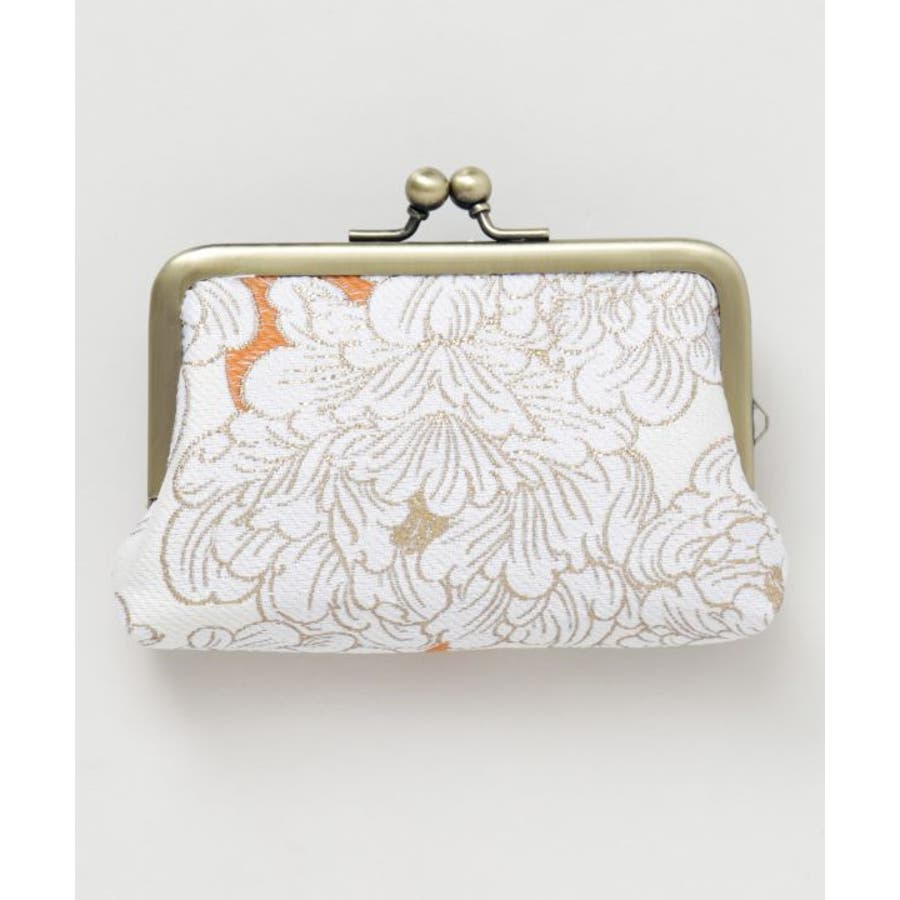 金鳳花(きんぽうげ)、芍薬(しゃくやく)、百合(ゆり)の花々を金銀のジャガード織りで上品に表現したがま口小物入れ。織りの光沢が上品にきらめき、伝統の和柄をモダンに仕上げています。手のひらに収まるサイズ感で、小銭やアクセサリー、お守り入れにもぴったり。気品あるデザインは、和装小物としても贈り物としてもおすすめです。