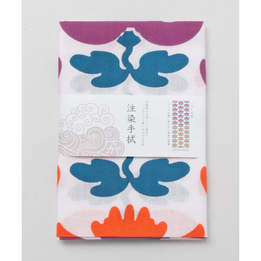 日本の伝統工芸品、こけしに描かれる花柄からインスパイアされた、こけし柄シリーズの手拭い。可愛らしい花柄が心をくすぐる一枚。