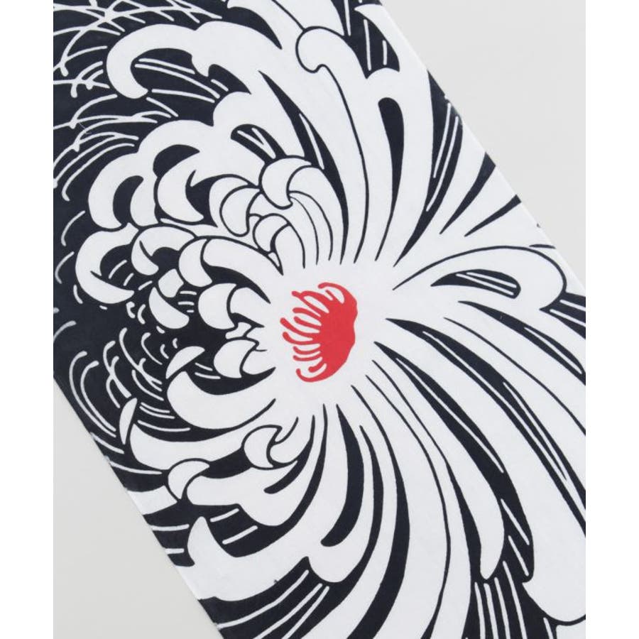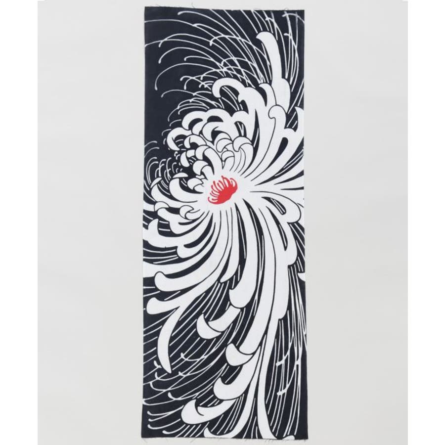力強く咲き誇る菊を大胆な構図で描いた手拭。白と黒のコントラストに赤が映え、モダンで迫力あるデザインが魅力です。飾っても使っても楽しめる一枚は、和の美意識を感じる空間演出にもおすすめです。