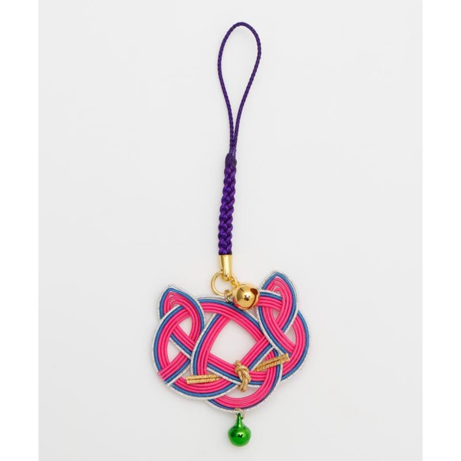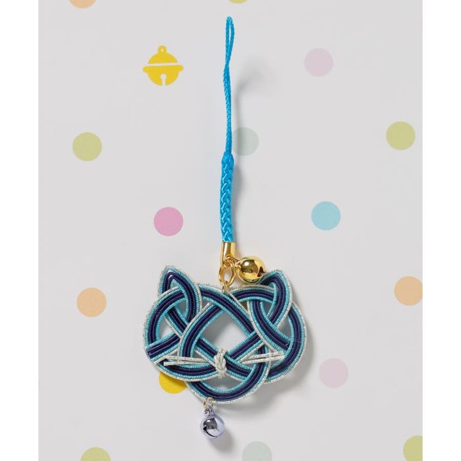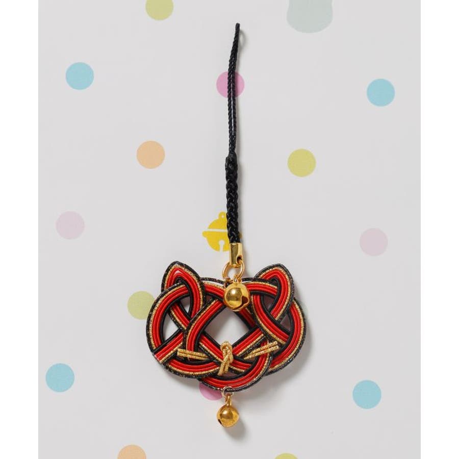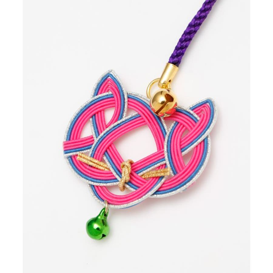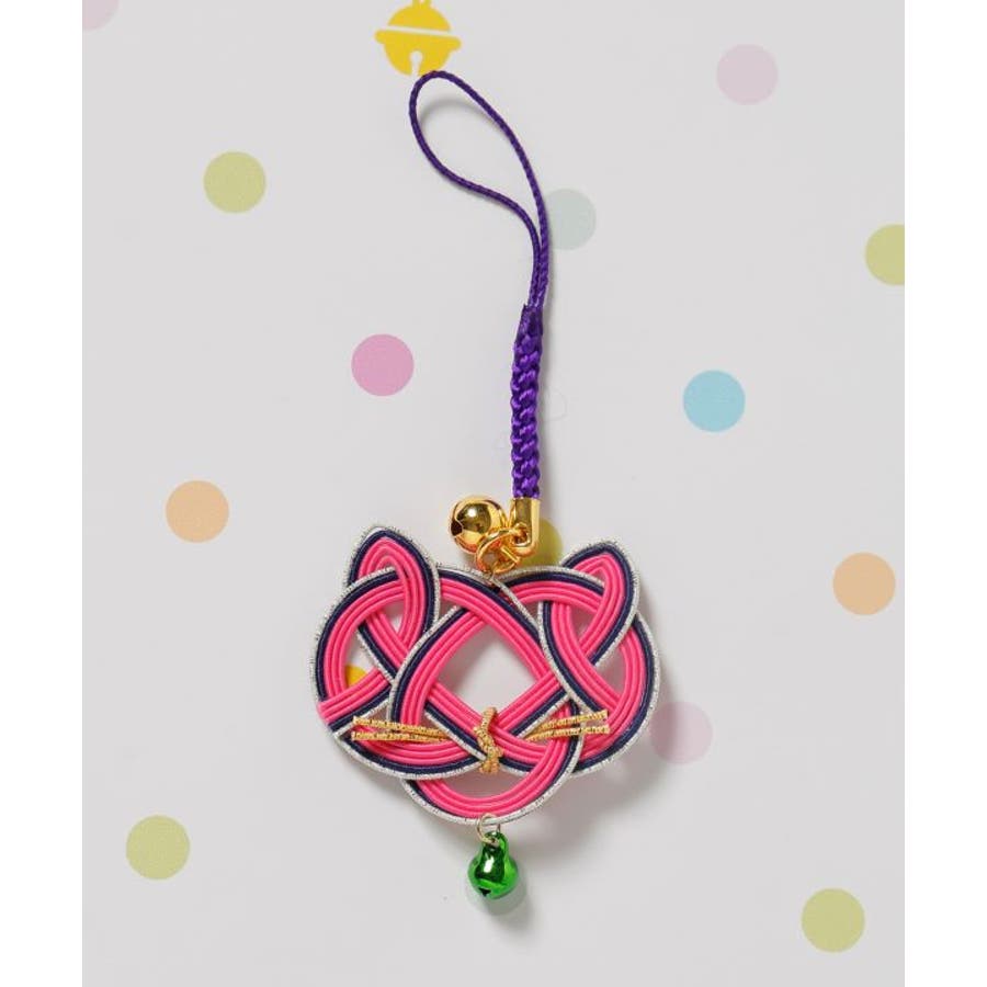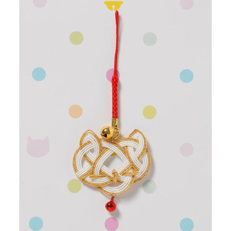 猫の顔を縁起の良い水引で表現したストラップ。首輪をイメージした鈴がアクセント。それぞれの色に願いを込めて、お守りとして身に付けたり、贈り物としてもおすすめ。