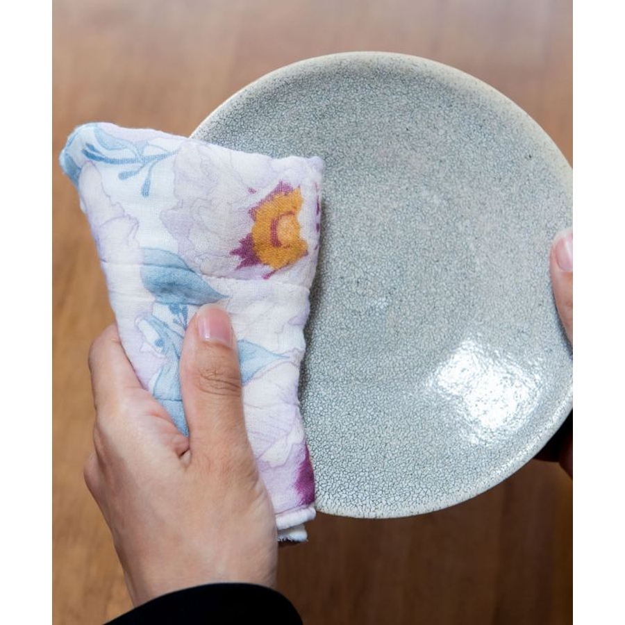 日本の象徴的な花をプリントしたふきん。「蚊帳」で作られた自然素材の生地なので安心してご使用いただけます。贈り物にもおすすめの一枚。