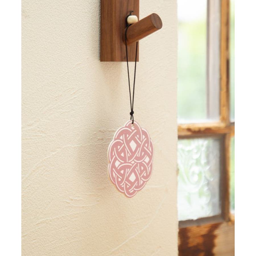 日本の伝統的な水引をモチーフにしたエアーフレッシュナー。僧侶の装飾としても使われる「修多羅(しゅたら)」結びの一部である袈裟(けさ)結びをデザインに取り入れ、上品で縁起の良い形に仕上げました。お部屋やクローゼット、車内に吊るすだけで気軽に香りを楽しめます。