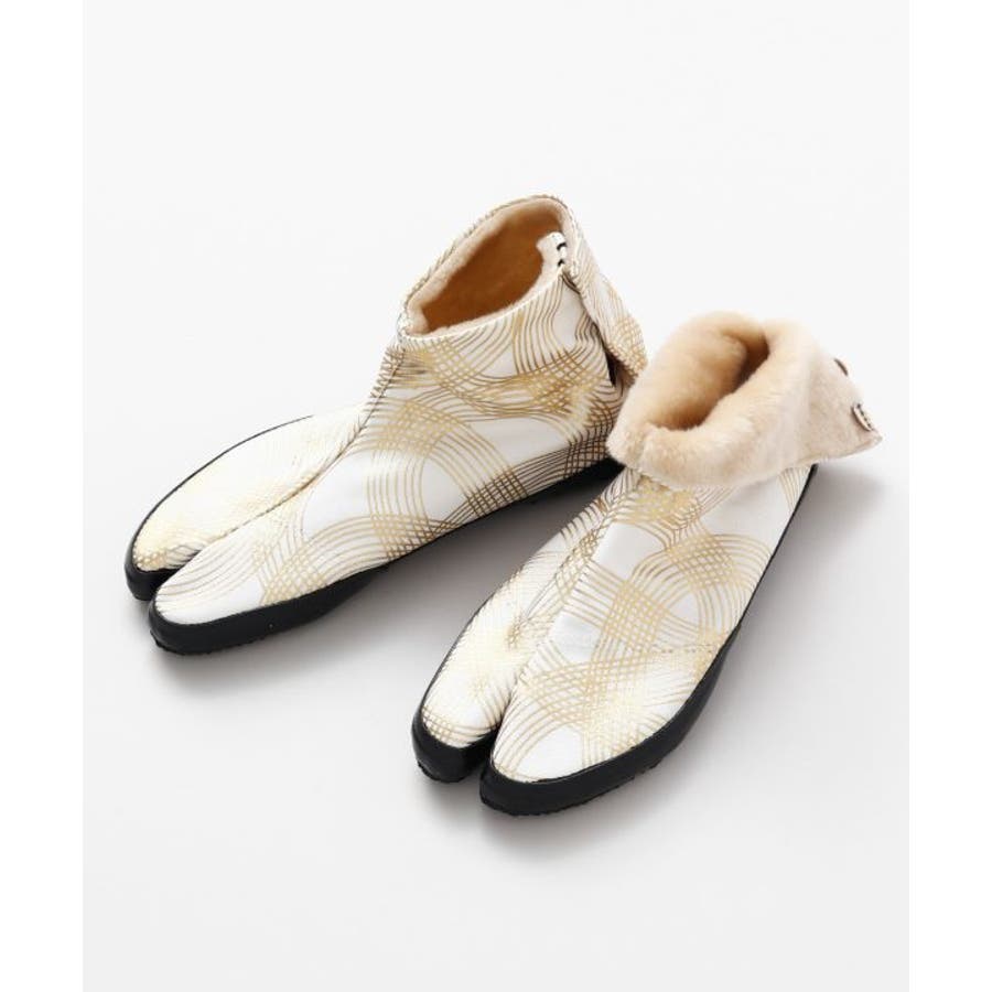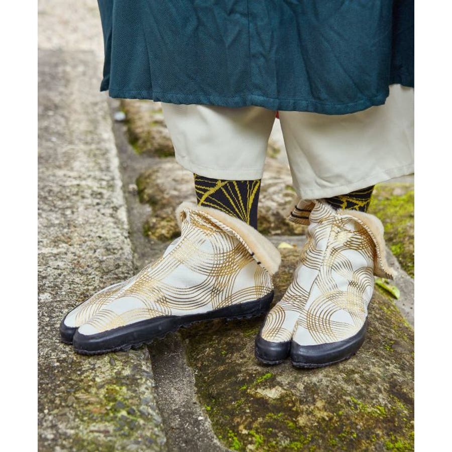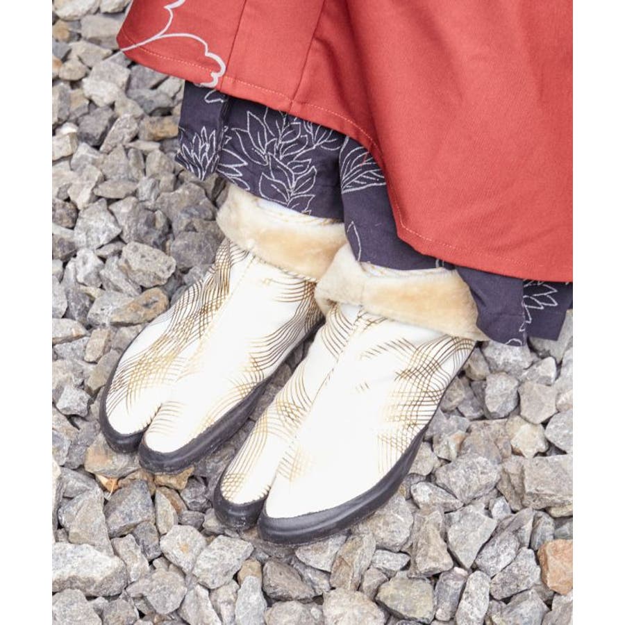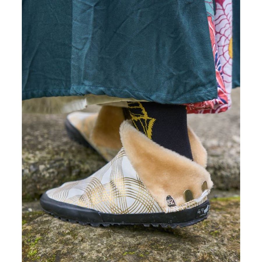 年始めのハレの日に使ってほしい「始めのはじめ」シリーズの足袋。一年の始まり、和装の始まり、何かを始めるのに合わせて使えるシンプルな水引デザイン。内側にボアが付いているので、肌寒い季節にぴったりの履物です。