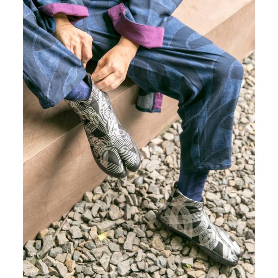 年始めのハレの日に使ってほしい「始めのはじめ」シリーズの足袋。一年の始まり、和装の始まり、何かを始めるのに合わせて使えるシンプルな水引デザイン。内側にボアが付いているので、肌寒い季節にぴったりの履物です。